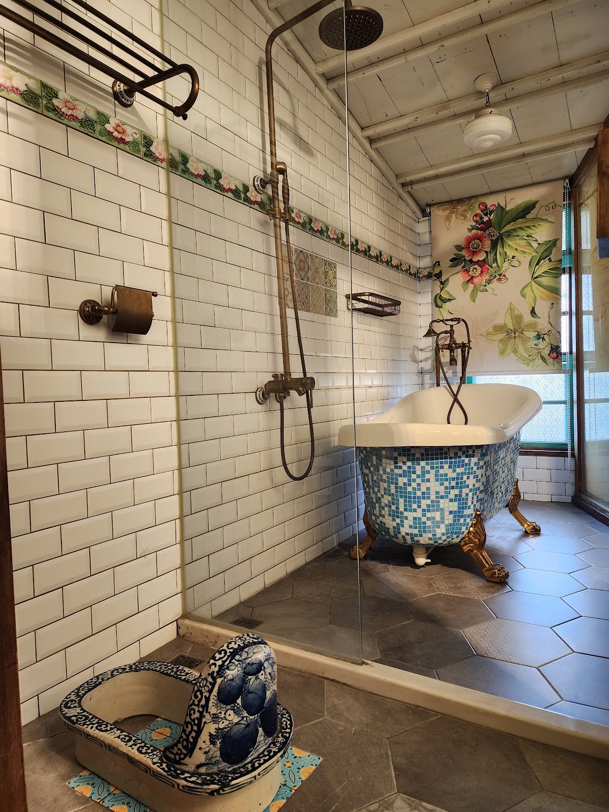 第一次瞭解花磚還有那麽多歷史典故,買了一組大戶人家的花樣回來裝x一下。看到大家一直貼著每個牆壁擺姿勢蠻有趣,下次去阿媽家記得跟浴缸合影留念。