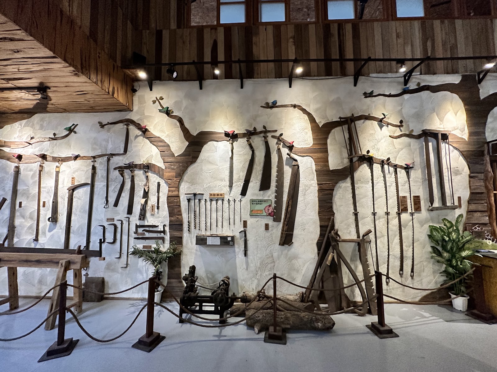 愛木村的核心理念之一就是對「老樹」的敬仰與保護。百年老樹與千年老樹象徵著歲月的流逝與自然的力量。在這裡,遊客不僅能夠感受到木工藝術的精湛,還能深入了解這些古老樹木背後的故事。工廠內特別設計了以「百年老樹」和「千年老樹」為主題的展示區,這些區域用實際的老樹樹幹、樹枝、甚至樹根製作的藝術品來展現木材的多樣性。這些木材不是單純的原料,而是承載了歲月、歷史與自然記憶的珍貴資源。