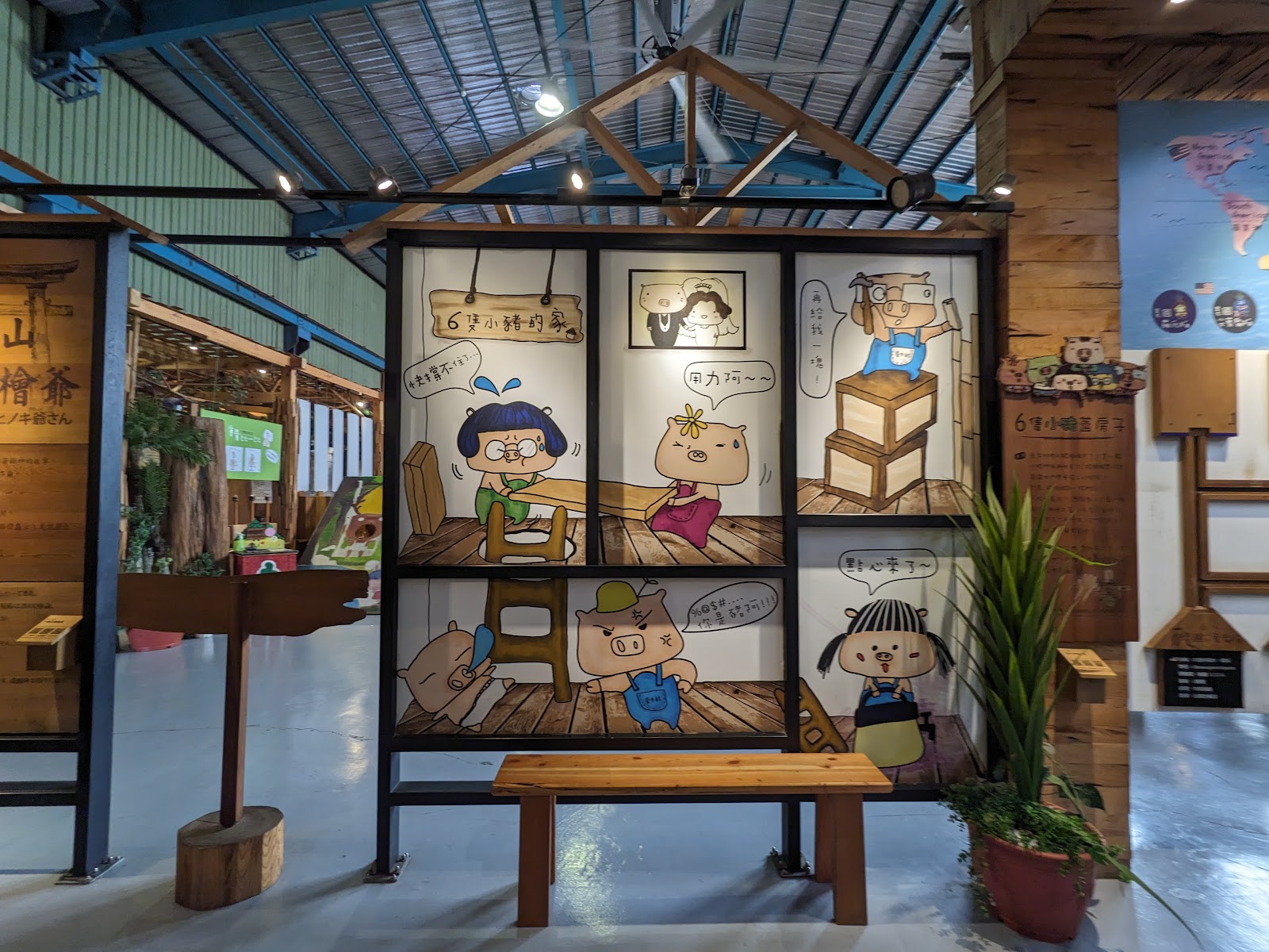 室內除了販賣區,其餘地方皆無冷氣。裡面設有許多可供拍照的裝置藝術,也介紹許多木頭種類的差異,包括觸感及味道。遊玩項目也很多,如打地鼠及積木等,也有兒童遊戲空間。