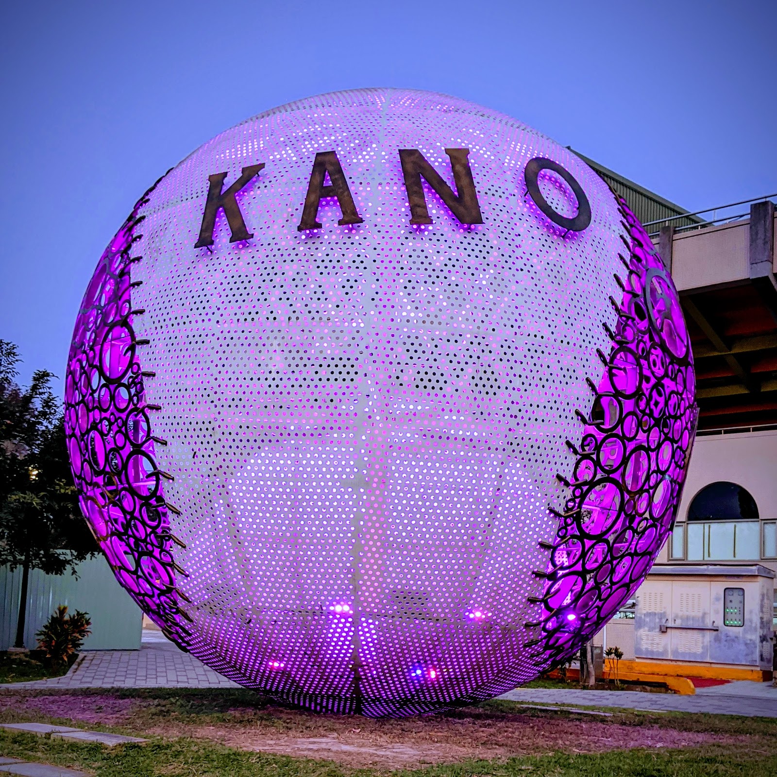 當然更不能錯過重達4公噸、直徑5公尺的KANO景觀球,以鋁合金製作,鑲嵌超過120個鏤空圈環,白天陽光閃耀、晚上七彩燈光秀,各有不同風情。