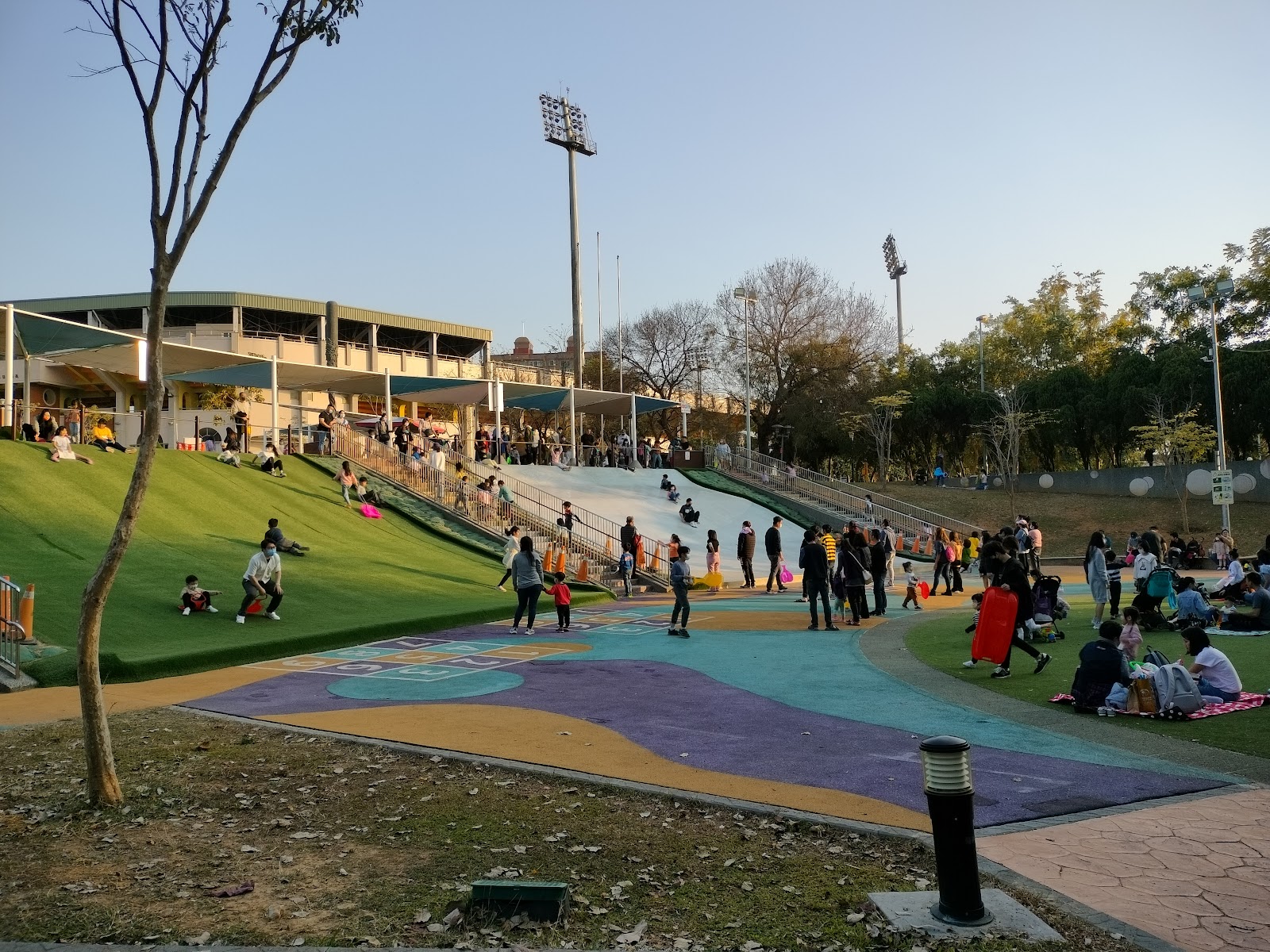這邊可以免費借滑草板給大小朋友也有派保全人員看守大家安全安全