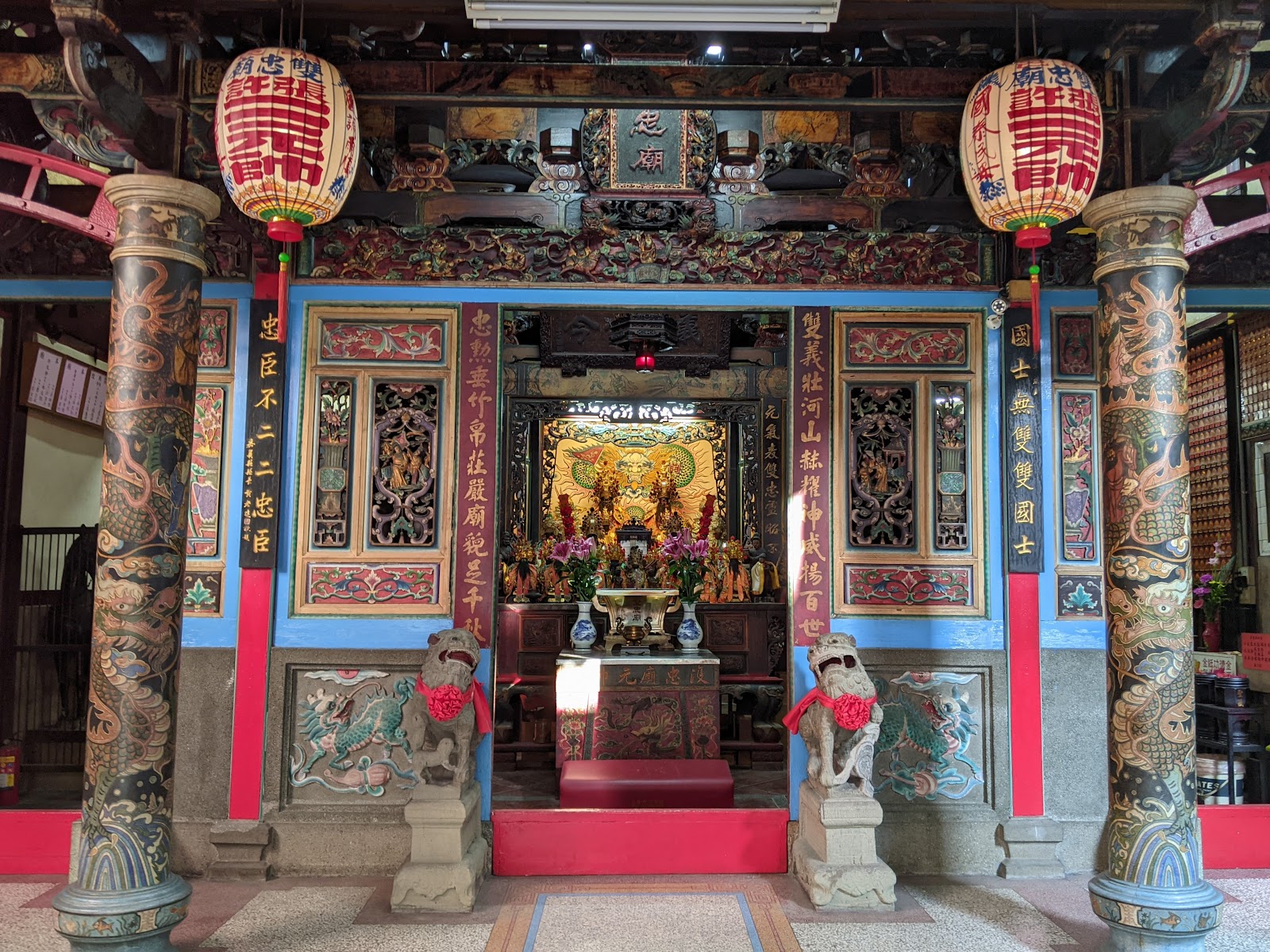 嘉義第一廟,主祀張巡、許遠安史之亂殉難的兩位忠臣,歷史最古、祀神特別,有石刻龍柱、石柱對聯遺構,神像內殿肅穆莊嚴,隱身在人潮鼎沸的東市場。