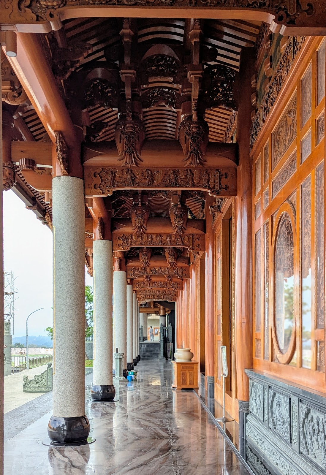 而且木構施工全都是以卡榫接合 完全沒有用到任何一根釘子 超強👍 而且整個三寶殿都是以台灣檜木建造而成 整體從外到裡 都讓人覺得無比莊嚴 氣勢非凡👍 雖然大仙寺目前有些地方正在做一些牆面上的維修 但入寺完全不受影響~不得不說 走過路過 真的不要錯過 非常值得一訪 實在太壯觀了~