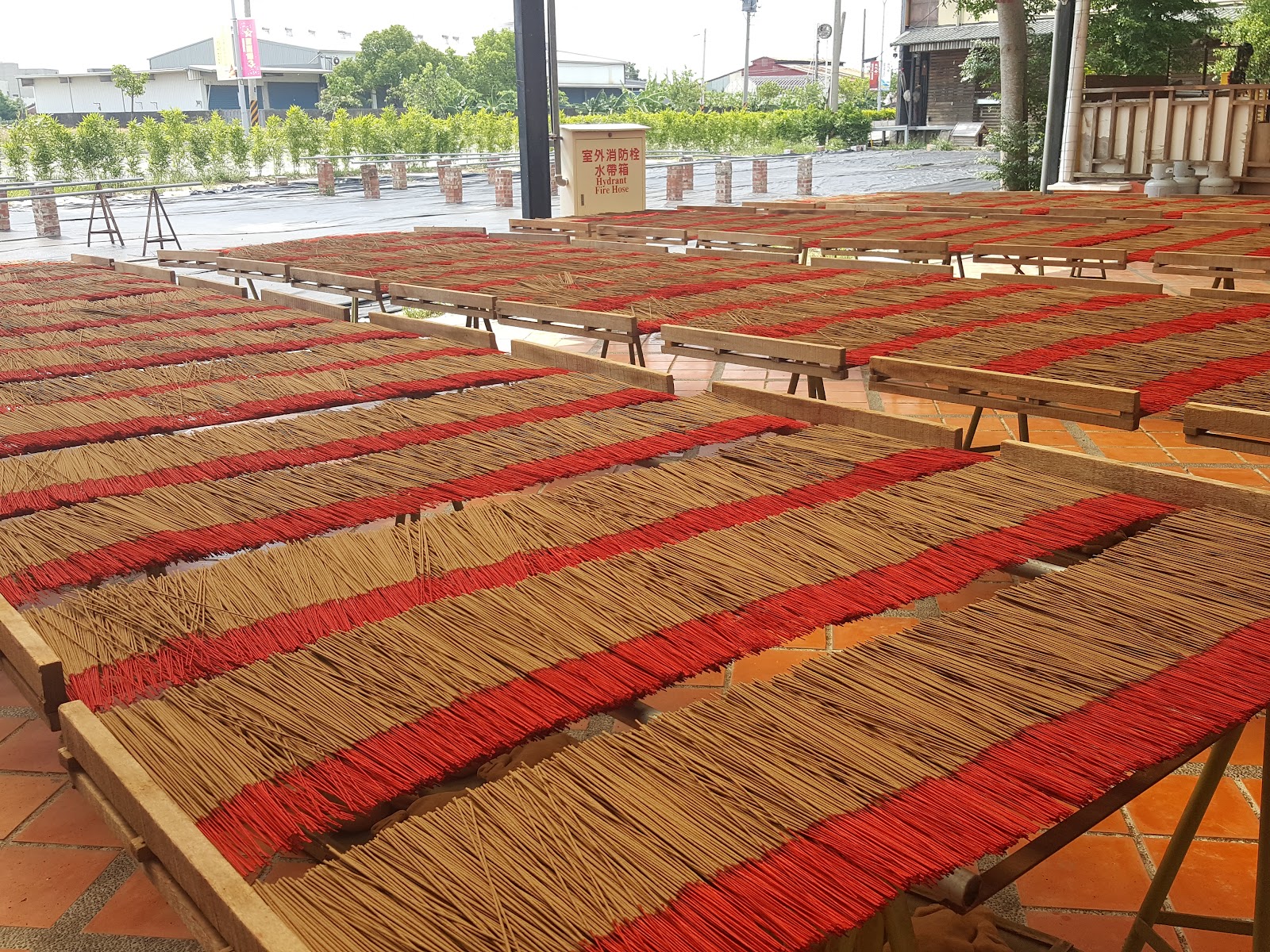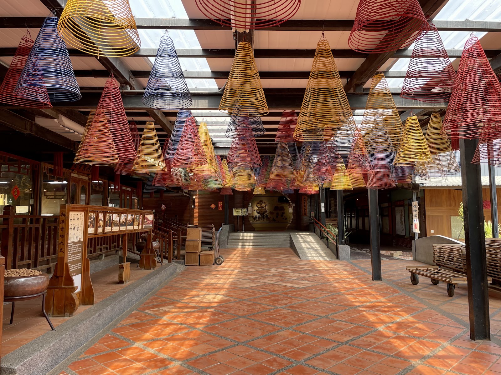 因為這裡是室內,所以不怕風吹雨打,在戶外也有曬香的地方,長廊上還介紹著整個製香的過程。