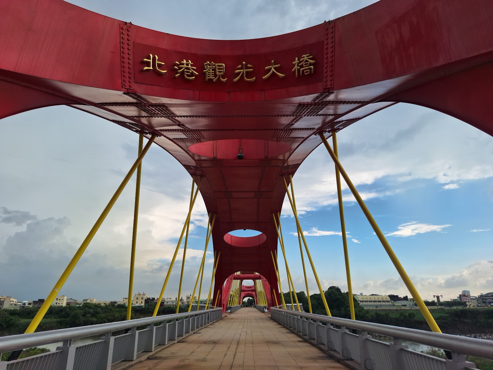 整座觀光大橋就在北港朝天宮正面大道的盡頭的北港溪上,老實說,整座橋設計及施工都是上乘,可惜並未達到其觀光的最終目的!人潮太過稀少,太可惜了!