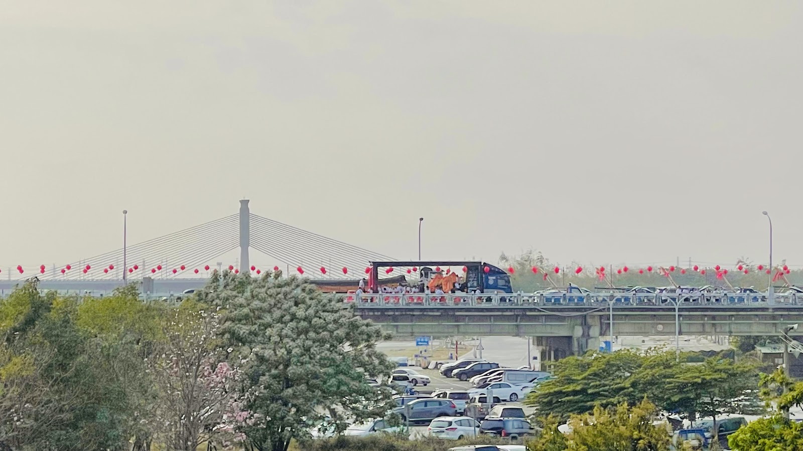 通往北港朝天宮的必經之路,很漂亮且醒目的一座紅色大橋,橋下的停車場佔地廣,停車很方便。