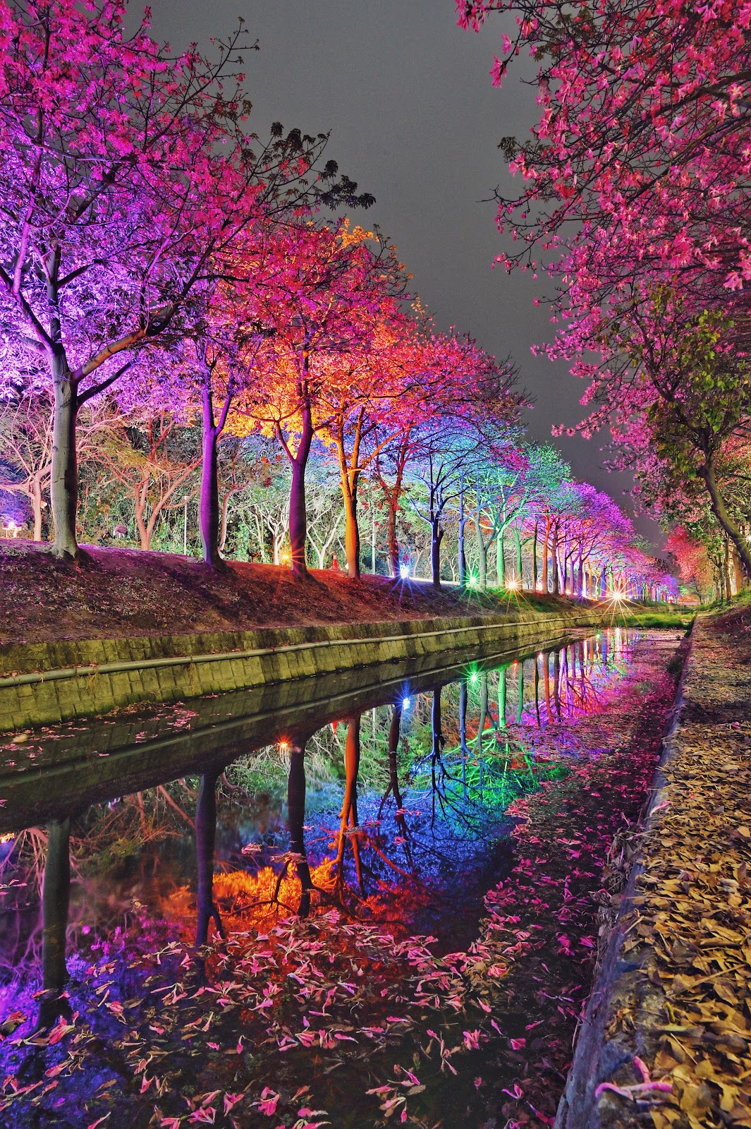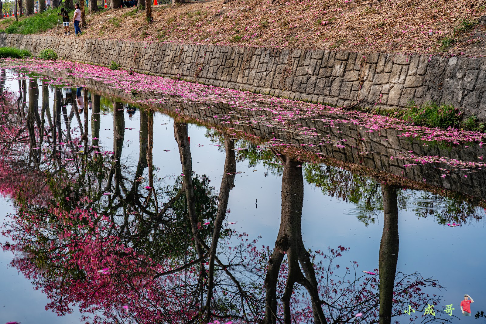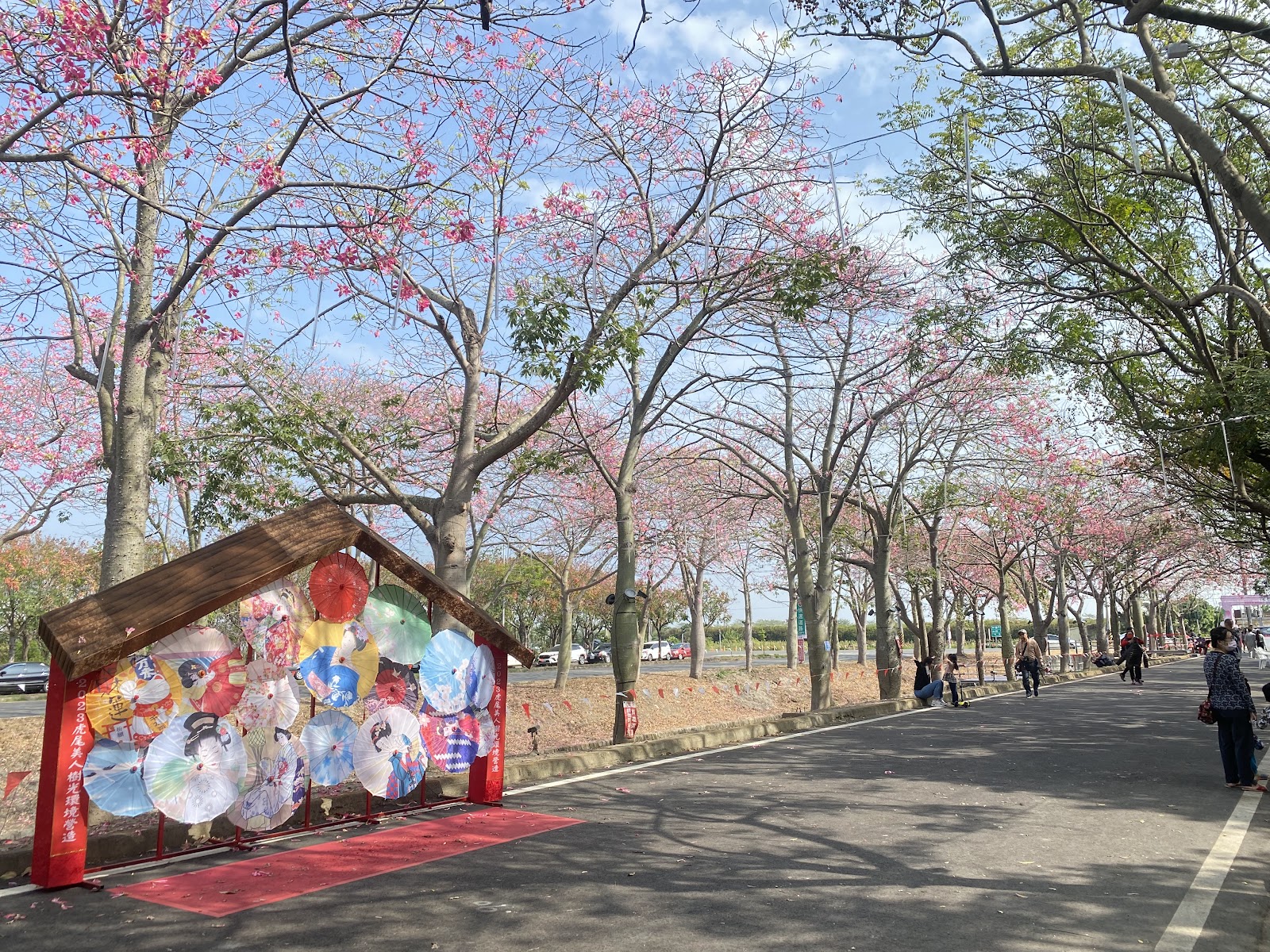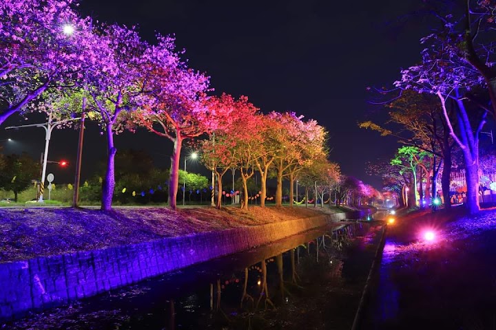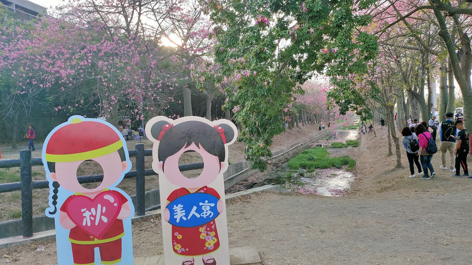 虎尾美人樹大道位在雲林虎尾科技大學附近,花海大約在每年11月中下旬至12月盛開,河畔、大道上開滿粉色花海,搭配花瓣飄落在水面上的美景,不管是從橋上遠眺、渠道邊漫步,都讓人彷彿置身櫻花海中,吸引花海控前往取景。