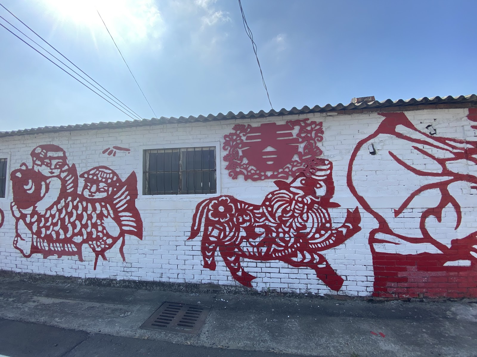 20240618很特殊的一小村莊,這裡的屋子外牆大都漆上剪紙圖案。整條街道圍牆也都一樣漆上剪紙的圖案,雖不是很長倒是有地方特色。