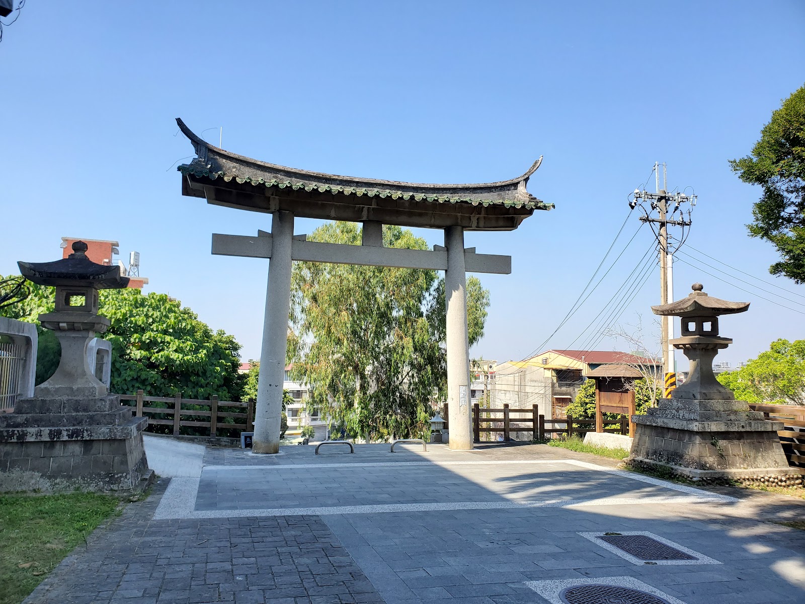 於1939年日治時期設置於此,雖然神社的建築不復存在,但還是保存著鳥居及石燈籠及參道,也成為目前全台神社殘跡中唯一具有完整鳥居的神社遺蹟。雖然有些建築已被拆除或是改建,不過還是非常具有歷史的價值與意義,平時假日非常適踏青、休閒、賞景及運動場所。