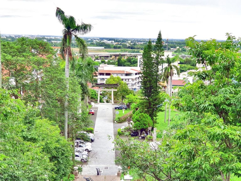 從鳥居階梯(淵明國中旁)往上走會先遇到濟公廟,濟公廟右後方只有熱水機,建議水帶夠,開車走導航會到濟公廟側門(有電動門),路段較斜且彎,停車場偏小約可容納8台車左右,進入側門左手邊有洗手間。適合帶4歲以上小孩,僅有階梯步道,推車無法進到公園內部,但濟公廟前風景漂亮,可鳥瞰林內市區與鐵路火車,傍晚可能也有不同美景