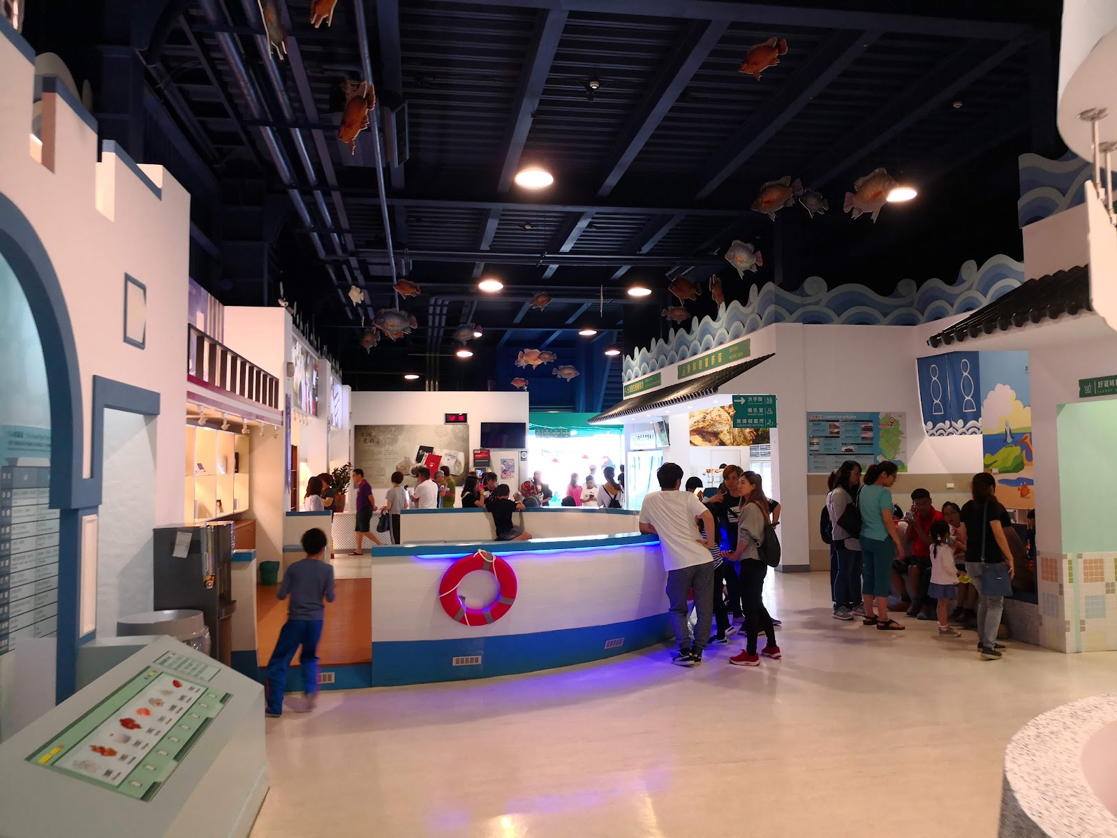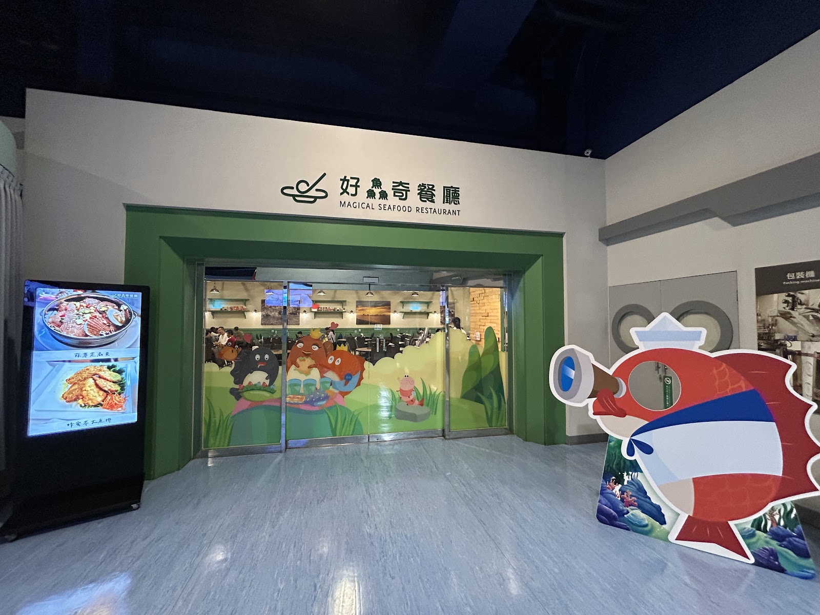 館內有開冷氣,販售的冷藏冷凍海鮮商品蠻多的,若逛累了也有座位區能稍作休息,館內也有提供飲水機、哺乳室、洗手間及無障礙廁所,小孩也有球池跟玩具可以玩,還有幾台棉花糖機、扭蛋機可以自費玩,除了鹹食也有販售小甜點跟飲品。