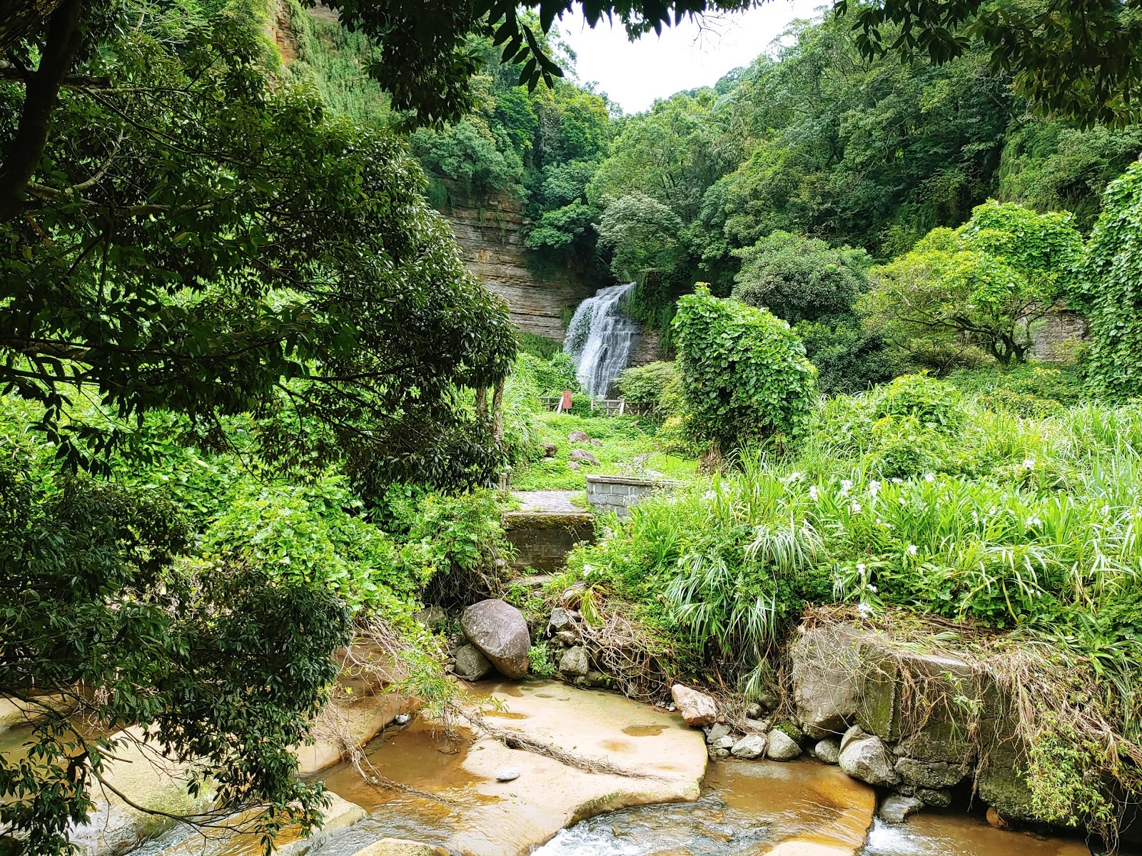 不用進到深山,就在故宮往前不遠,人行道就能看見樓梯走下去玩,沿著溪邊會發現好幾處位置,看谷歌地圖發現還能帶游泳圈來滑水!最重要的是!手機還有訊號!種草!