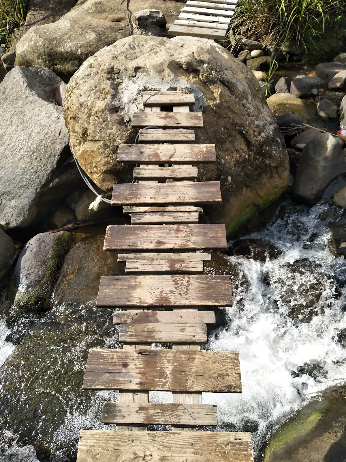 有一塊區塊水流緩慢,適合小孩子抓魚蝦,馬路旁有一個流動廁所,下溪邊路還算好走,溪邊的環境還算乾淨