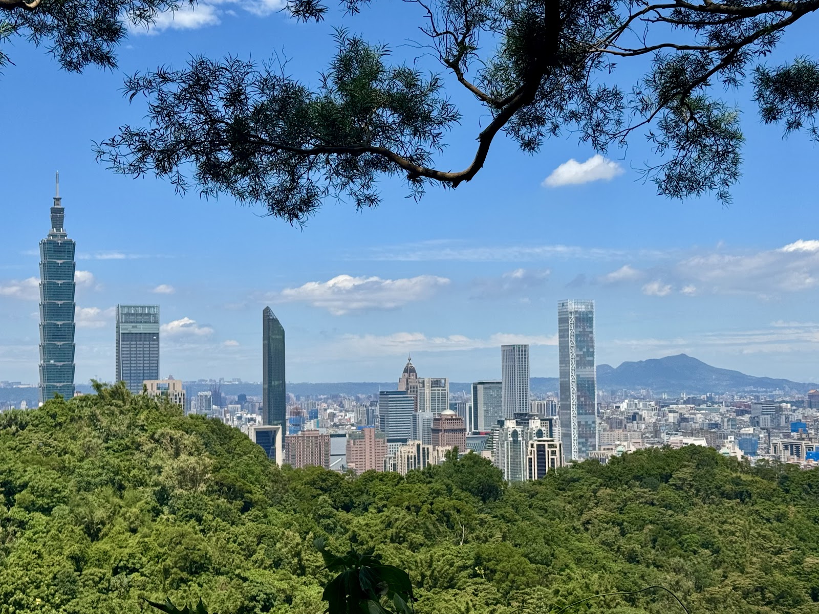 過了階梯路,是一段較平緩的山路,走起來輕鬆舒服。沿途可以欣賞風景,享受眼前的一片綠意,聆聽蟲鳴鳥叫~大自然的樂音,還有總能從不同角度眺望101大樓,走著走著,心情越來越舒暢。