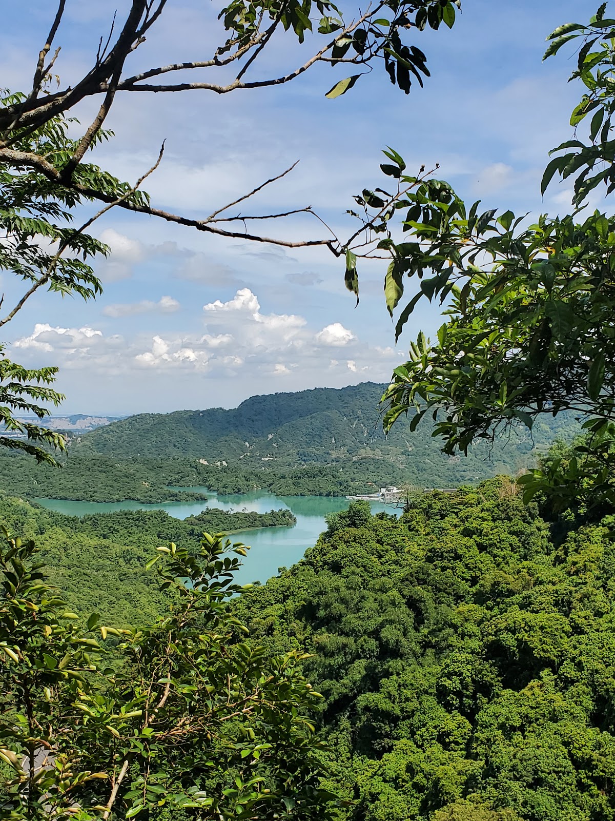 稜線上的眺望,可見南化水庫非常優美,水位高,水量充足,藍天綠意,超棒!