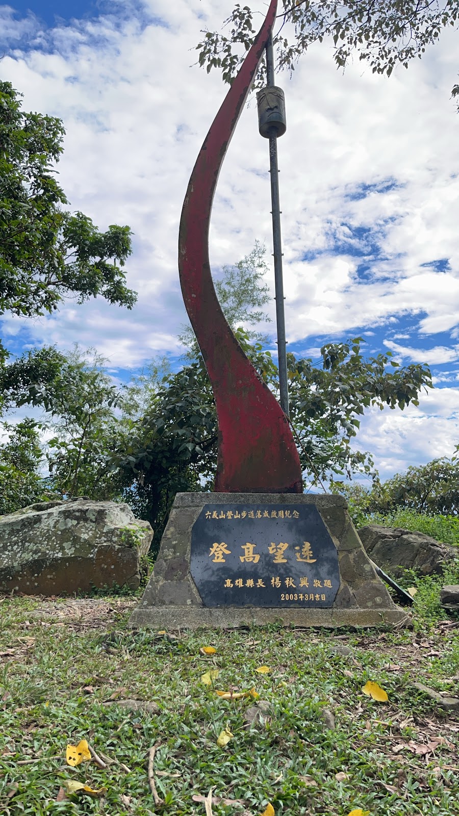 慢慢走,約2hr可以抵達山頂。體力較好或速度較快的山友,大約90min內可攻頂。山頂有步道落成紀念碑、三角點。六義山稜線最大的特色有三:1. 涼爽 2.同時為台南與高雄的縣界,西屬南化,東屬甲仙 3.可眺望南化水庫與甲仙市區