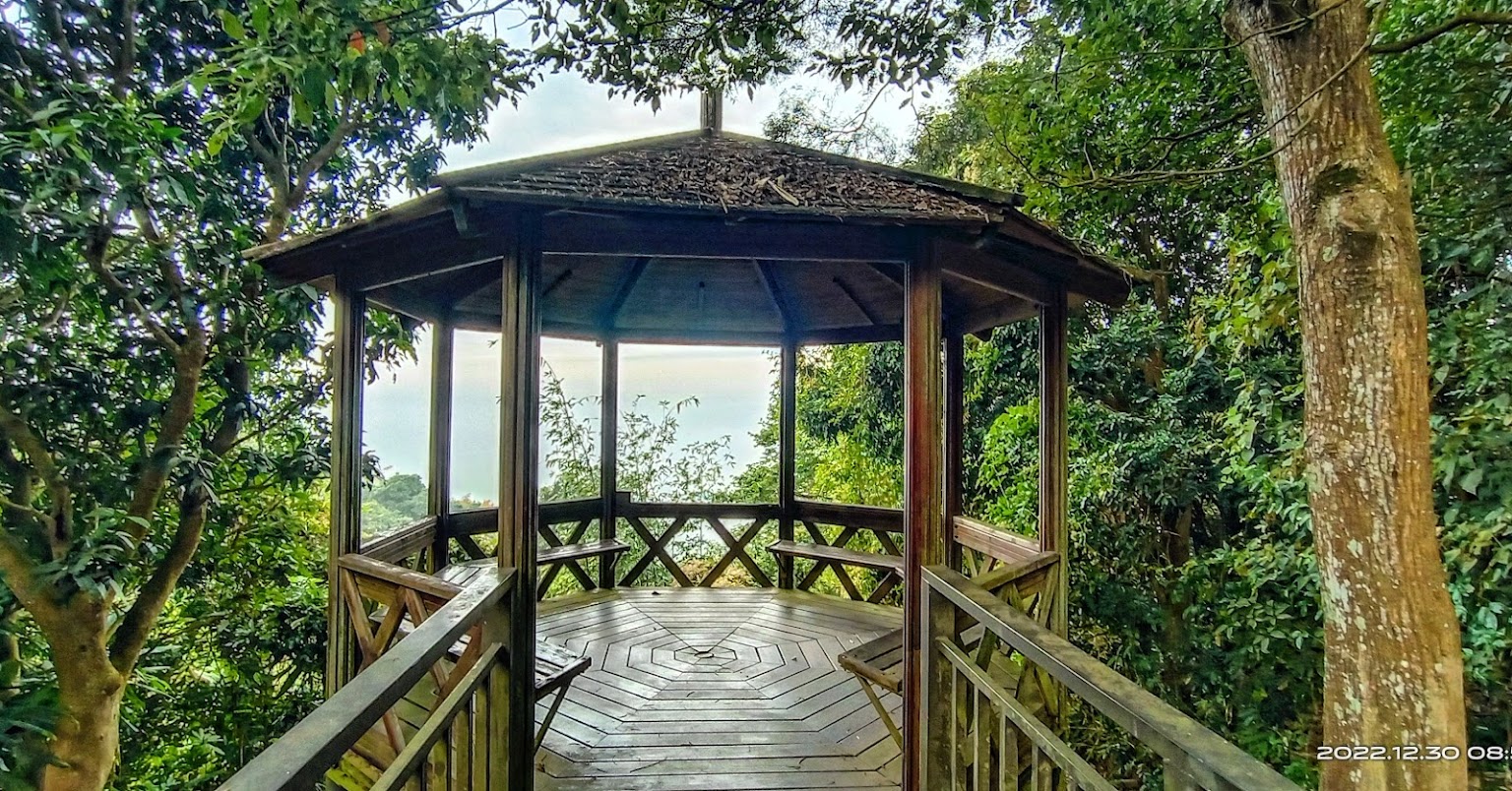 觀壩亭,離子霞登山口1.5k左右,約走50分鐘可到。是第一處有展望的休息處。