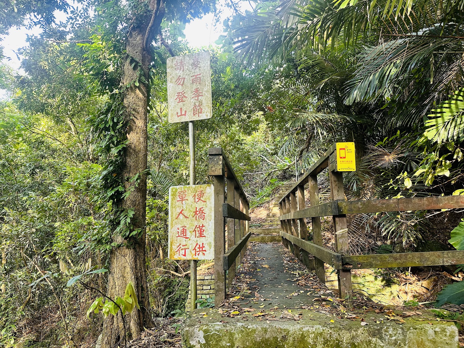 步道:面積偏小高低差大、有少數角度怪怪跟鬆動的台階、環境偏溼有青苔、有一些樓梯是斷掉的、有一處沒有台階只有土路