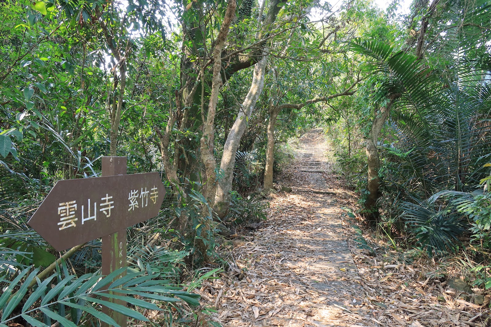 前幾k都是爬坡由小石階組成,間隔小爬坡較下坡容易,部分木質階梯損壞及道路被植物擋住