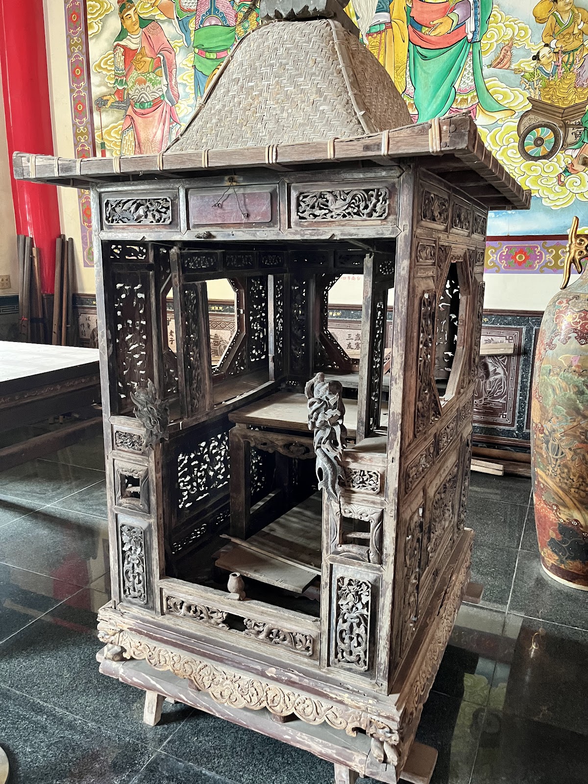 歷史悠久的廟宇,角落的神轎跟文物都可以直接證實。