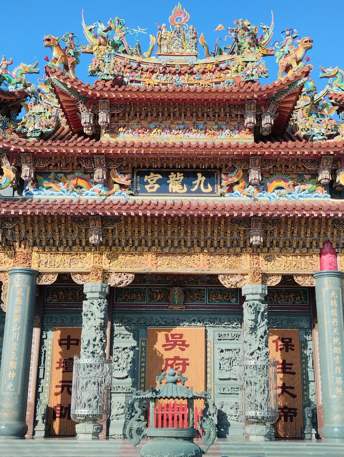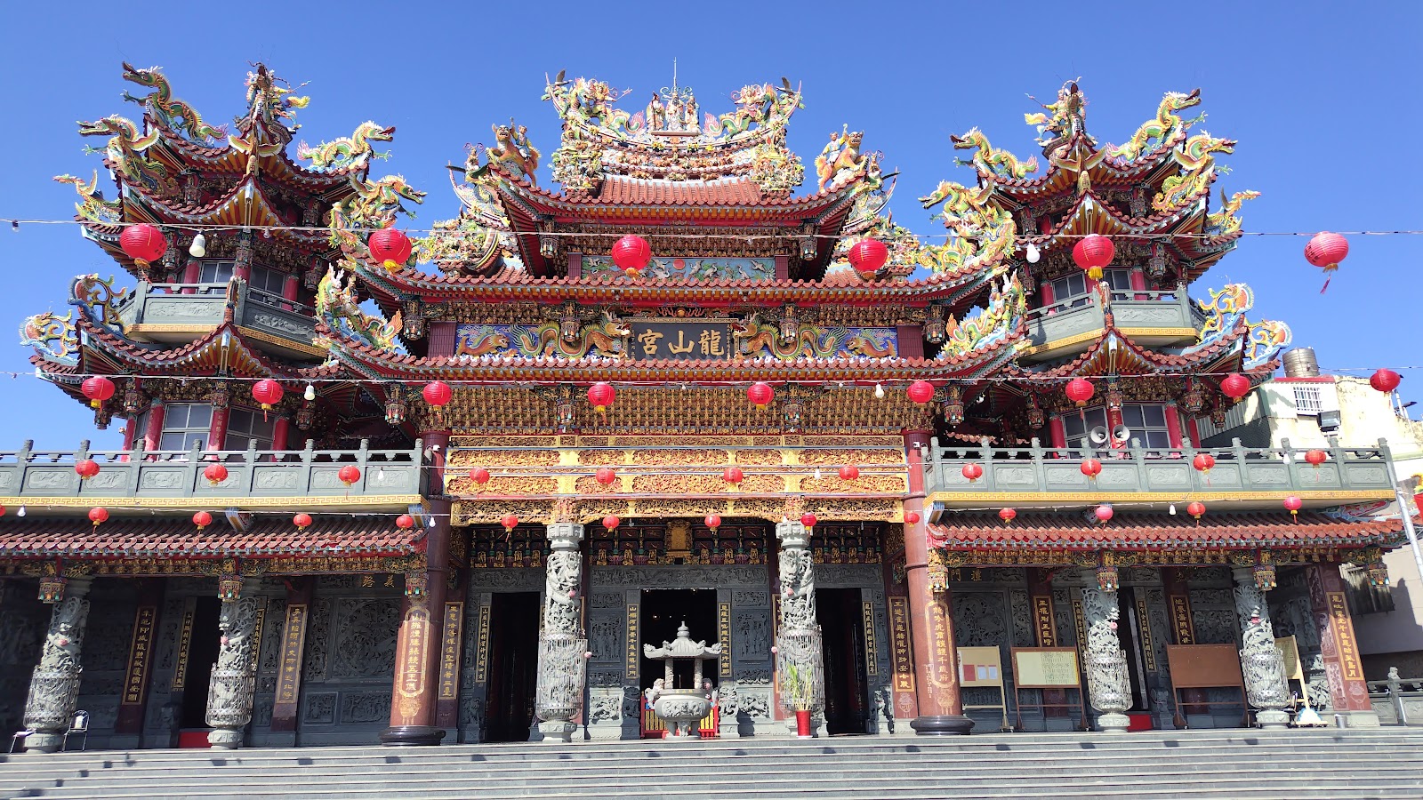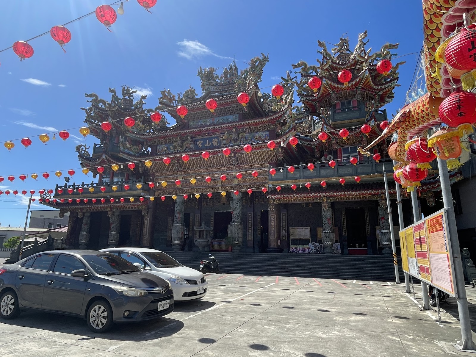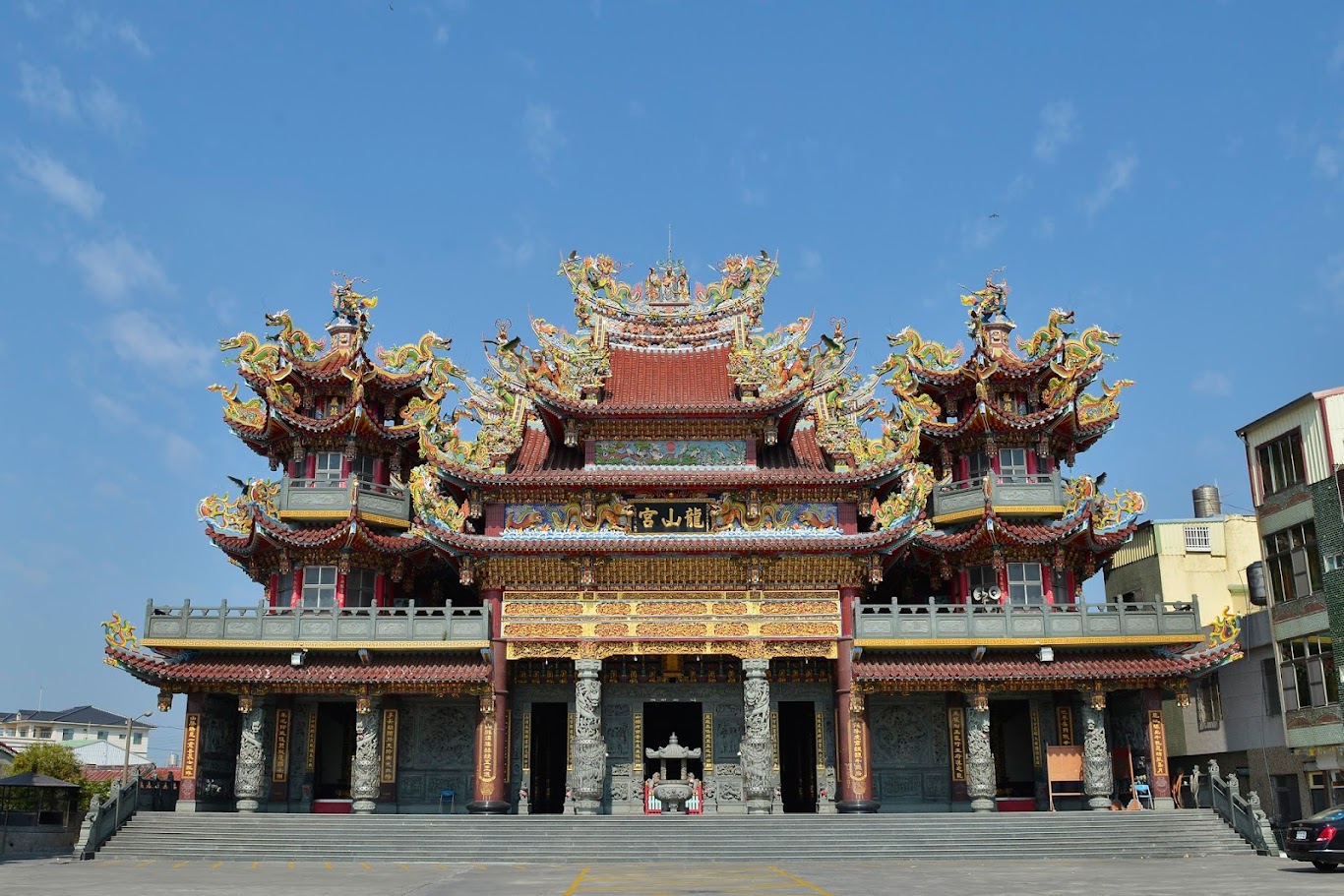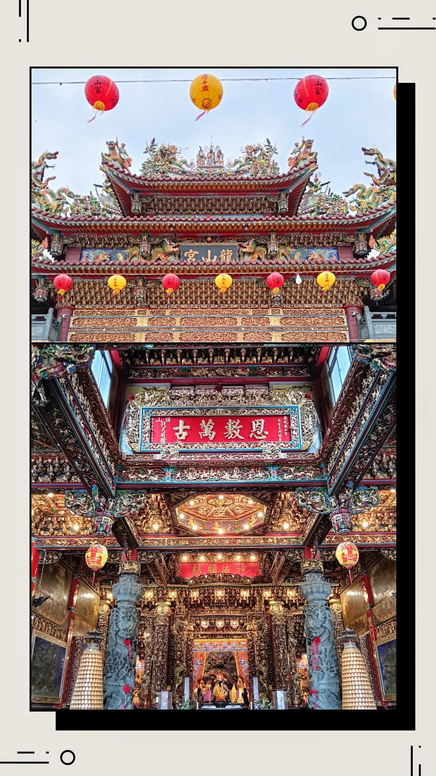 前往七股鹽山的路上,赫然發覺有座雄偉壯觀的廟宇牌樓:龍山宮,臨時起意轉入龍山宮參拜,整座龍山宮雕龍畫棟,內部更是精雕細琢,令人讚嘆驚艷!