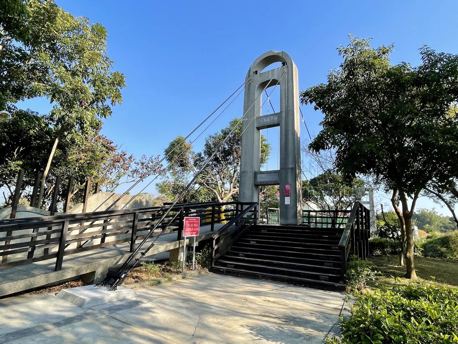 沿著吊橋開始走,都是平坦的路面,只是石板路略凹凸,我認為不適合騎車。