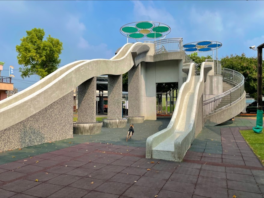 空間很大,如果小朋友喜歡玩溜滑梯的,千萬不要錯過,因為這裡有快兩層樓高的溜滑梯可以讓小朋友挑戰一下。溜滑梯雖然看似很高,但中間有個緩衝不至於衝太快,而且下方緩衝處很長,小朋友也不會有飛出去的危險。旁邊也有再小一點的溜滑梯,重點有遮陽啊,這實在是太棒了,陪玩的爸媽至少不會這麼熱。溜滑梯玩膩了,可以到小吃部吃冰棒或者走吊橋。旁邊也有遮陽的停車場,或者路邊也算蠻多可以停車的位置。空間很大,小朋友可以好好跑跳放電沒有問題。