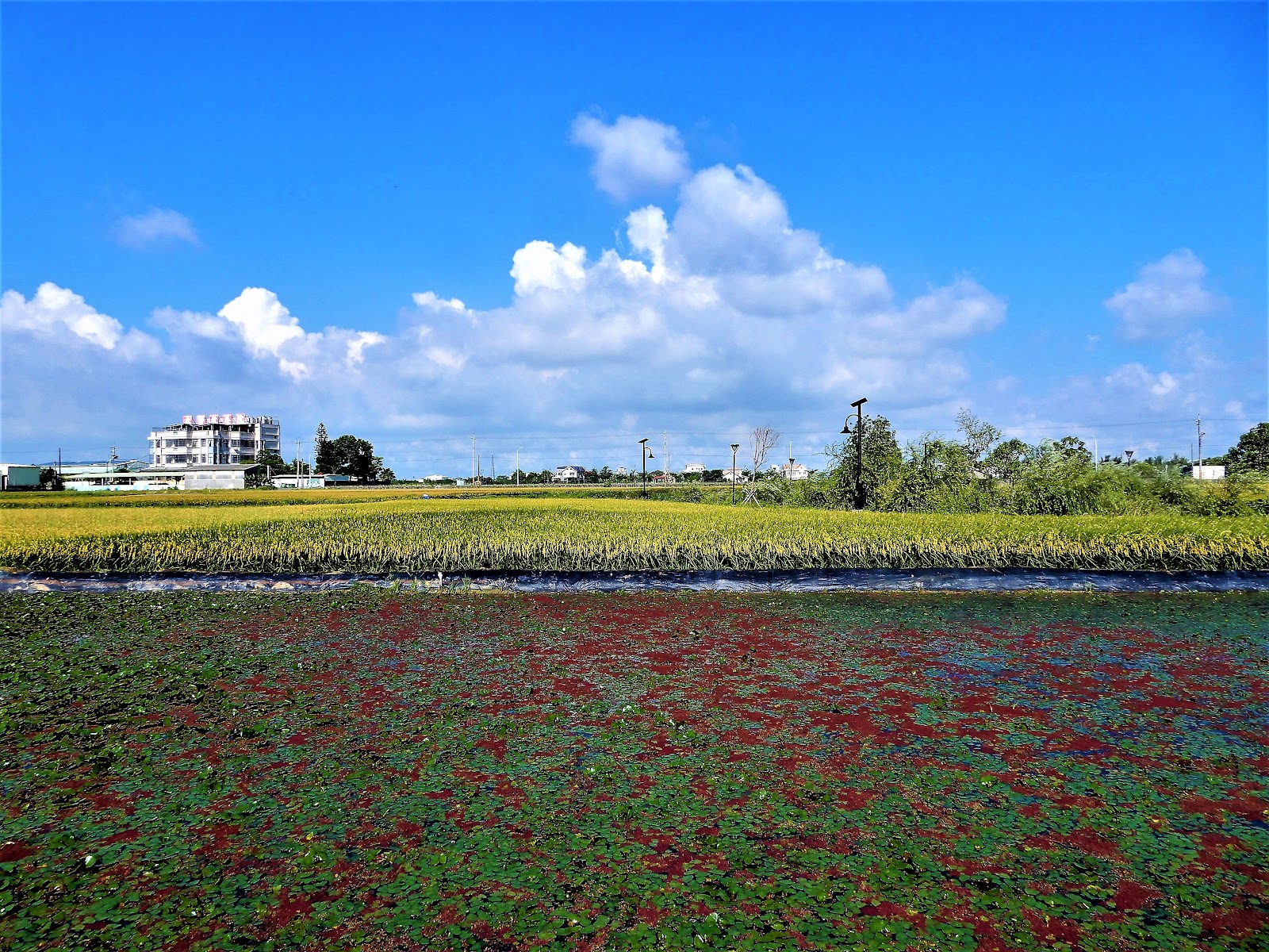 傍晚來走,很美。但是白天來才能在產季體驗採菱角和買菱角。跟回鄉創立橋葦紅菱的青農聊天,增加對菱角和官田農業概況的了解,收穫很多。
