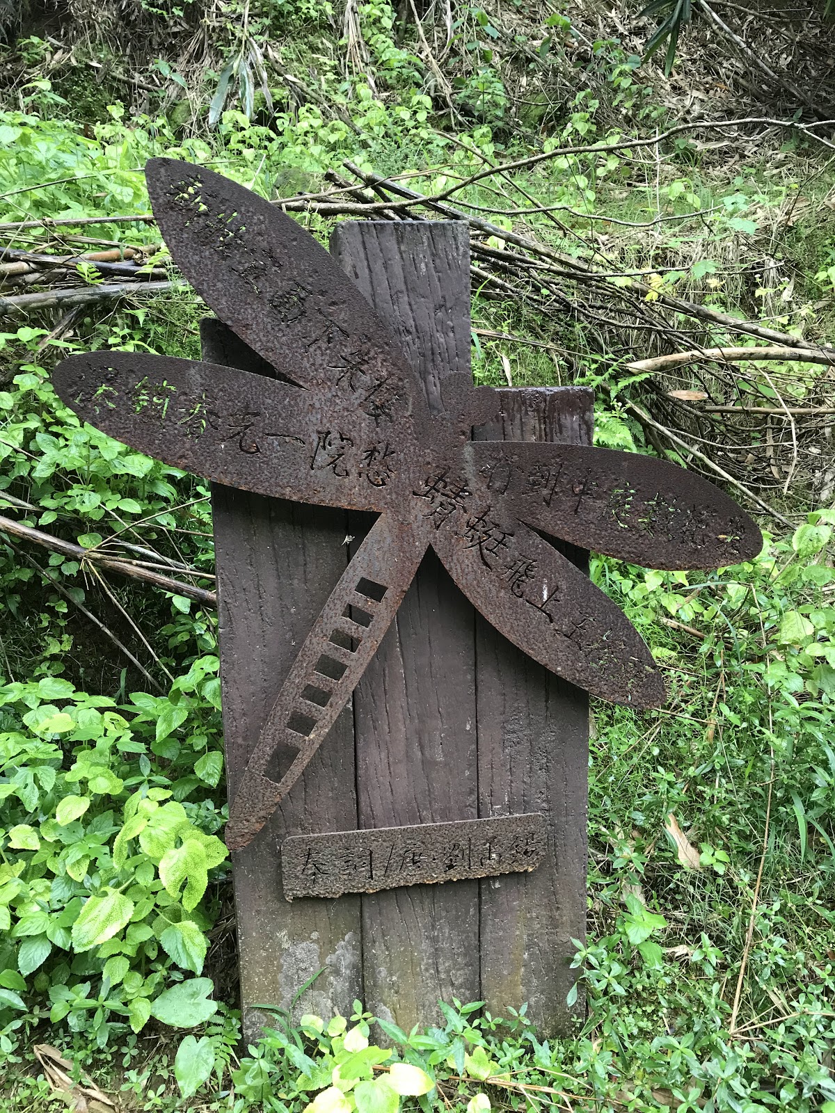 利用蝸牛、蝴蝶丶蜻蜓、魚丶鳥造型刻上詩詞標註出處(部門欠缺維護已腐鏽),地磚刻圖介紹植物,稍不經意就錯失資訊!季節性的物種交織搭配而成小公園。