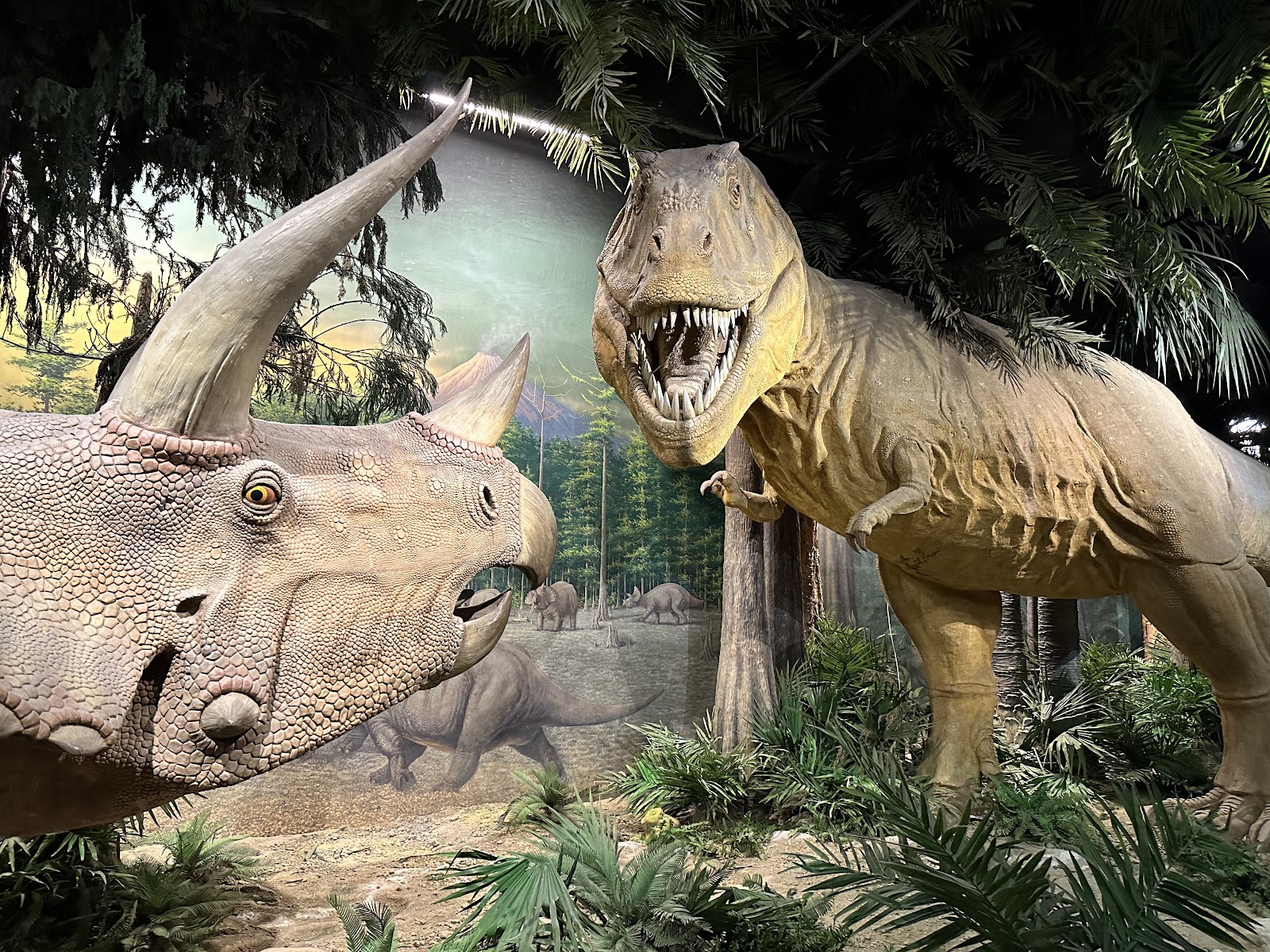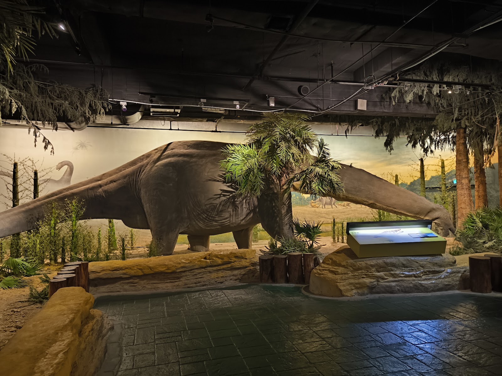 包含林旺在內,有很多標本的場館,還做了展覽場景而且相當生動。地下有幾副恐龍化石跟雕塑。話說那隻暴龍是真的,仔細看會發現他眼睛在動,他在等小朋友靠近要吃掉。