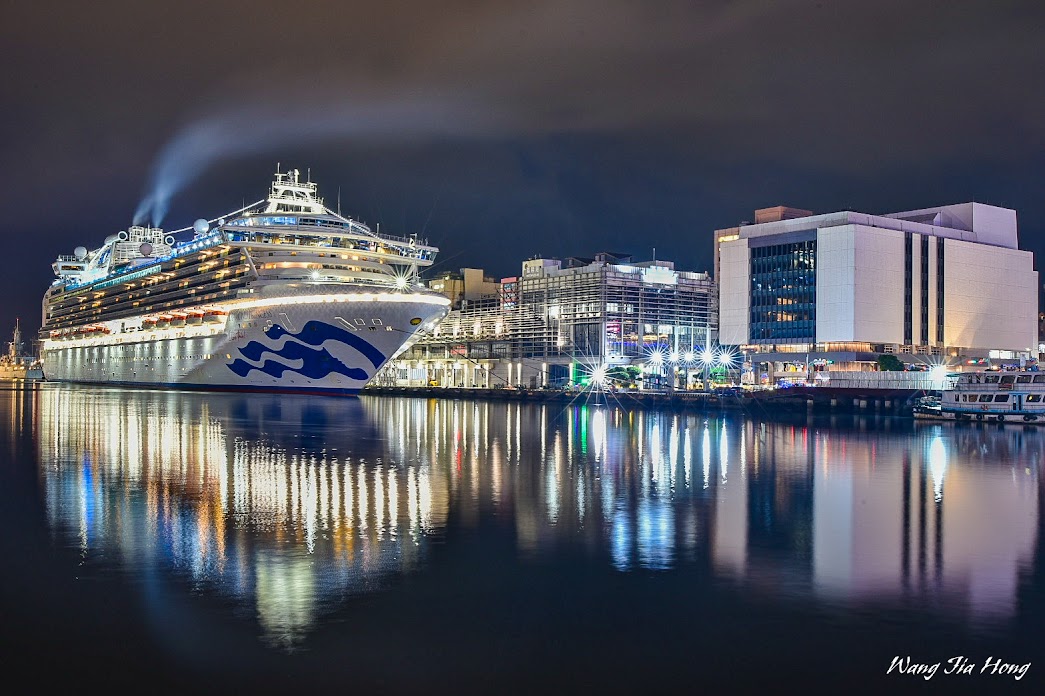剛好榮耀號與奮進號一同停靠在港口,可以近距離觀察不同的郵輪,老媽興致勃勃覺得有趣。