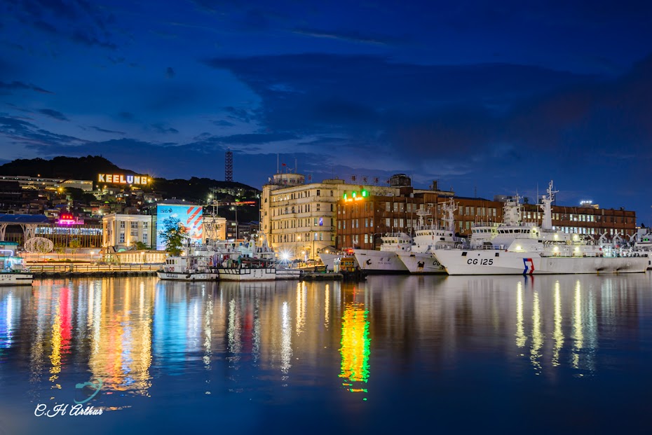 海洋廣場晚上10點散發著獨特的港口魅力,此時廣場的喧鬧逐漸平息,取而代之的是一種靜謐而迷人的氛圍。面向基隆港的廣闊視野,水面上船隻燈光與城市的燈火交相輝映勾勒出浪漫又夢幻的夜景。