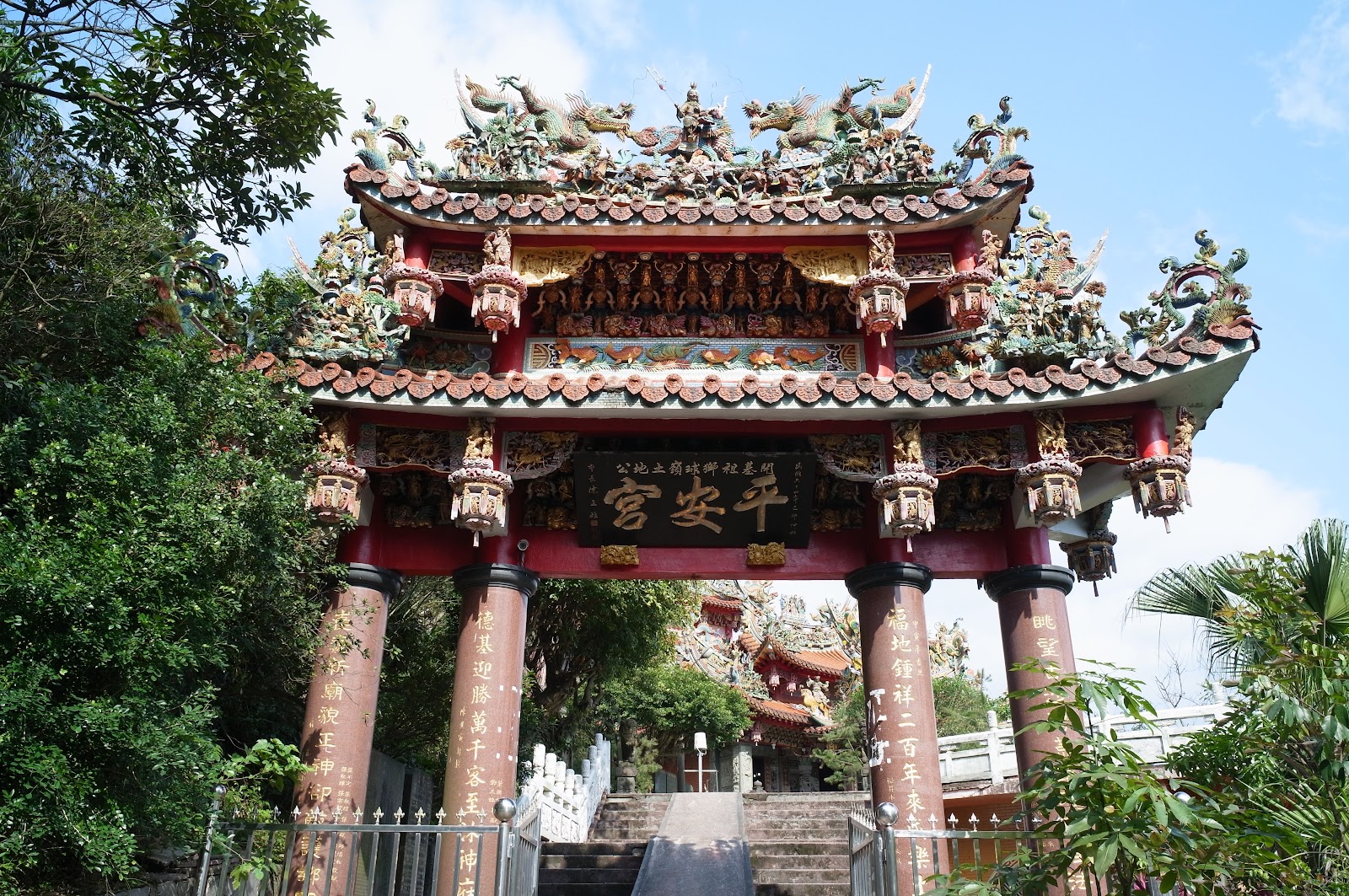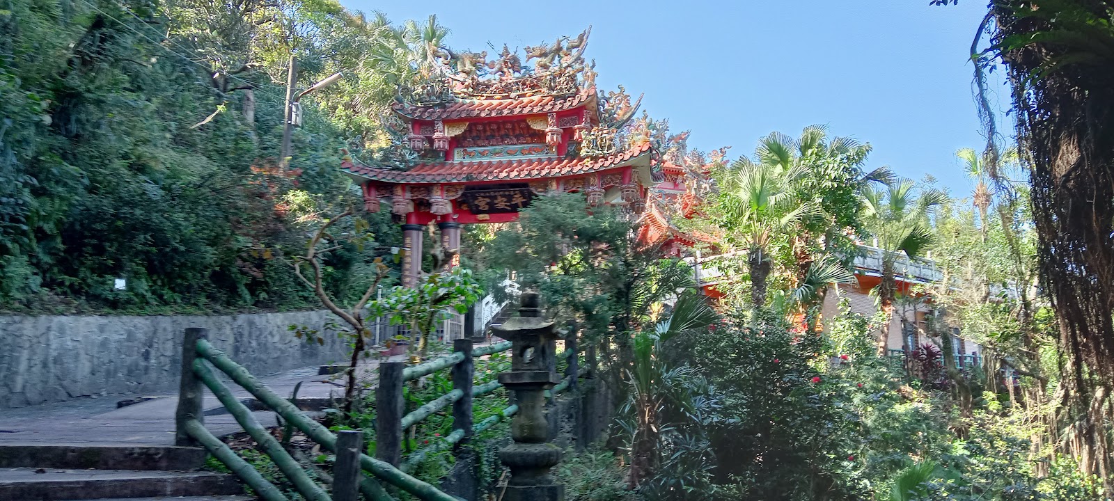 平安宮 真的很雄偉壯麗, 還真 沒想到它是 基隆市創建歷史最久遠的土地公廟. 門口的牌匾 以及 主廟 感覺都維護得很好. 走到 最裡頭, 那邊的風景視野 也不錯. 上來途中 經過的庭園, 也有點 日式風味感.