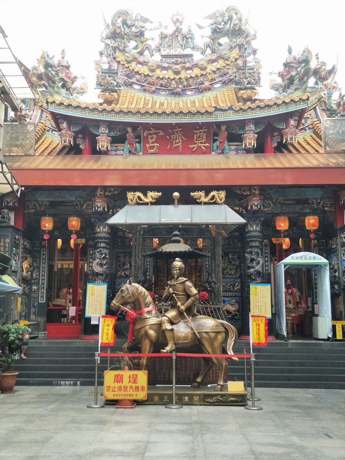 基隆廟口夜市的「廟」指的就是奠濟宮,因此得名,位於廟口夜市中段,與護國城隍廟、慶安宮合稱為「基隆三大廟」,主祀開漳聖王(陳元光),廟門口就有一座金閃閃的「開漳聖王騎馬像」,有免費廁所供逛夜市民眾使用很佛心!