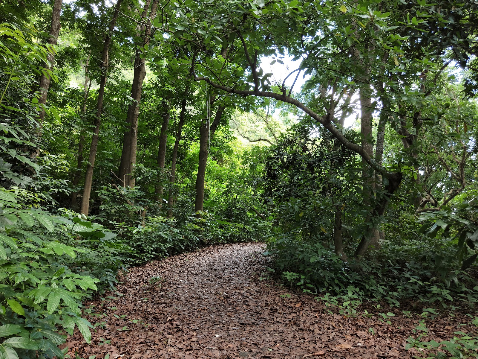 山徑草叢生,看著很危險,感覺隨時有蛇出沒,加上山林中光線被遮擋,更顯得很原始,有種森林探險的刺激感。