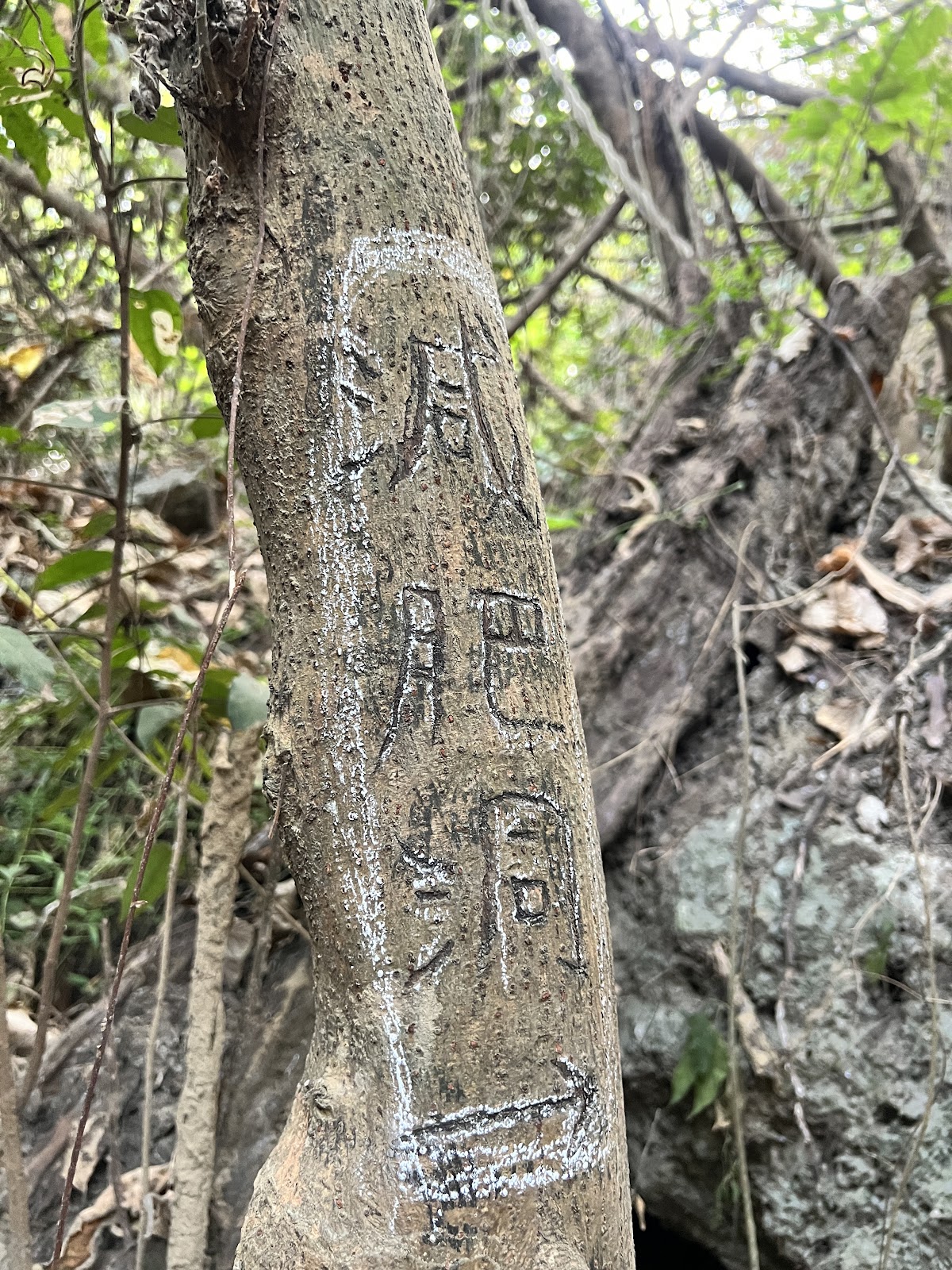 往減肥洞的入口處,樹木上被刻上減肥洞三個字,因為官方的指標指向不明確,所以這可能是之前的遊客刻下的吧。