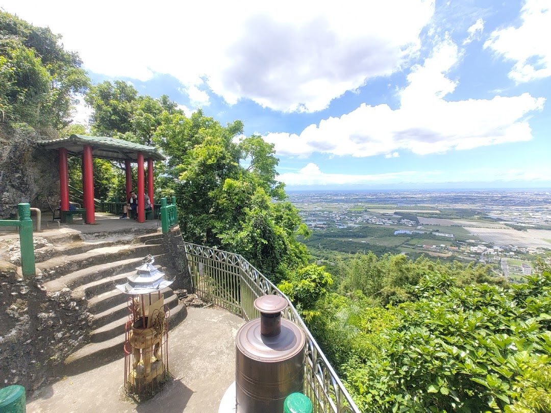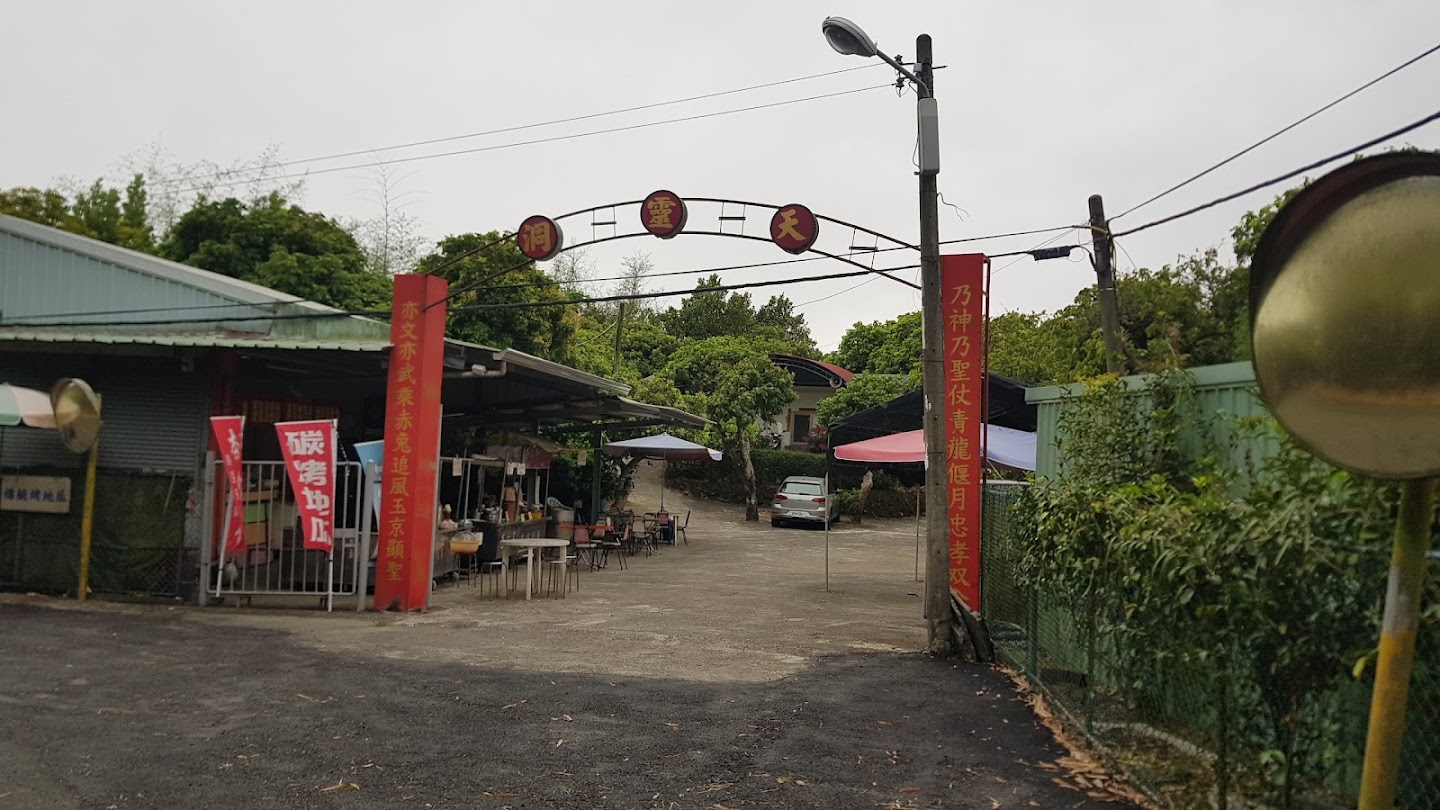 天靈洞是由海裡冒出的石灰岩地形,洞裡供奉濟公禪師,岩洞後方高處設有2座涼亭,可以登高遠望大崗山平原景觀。