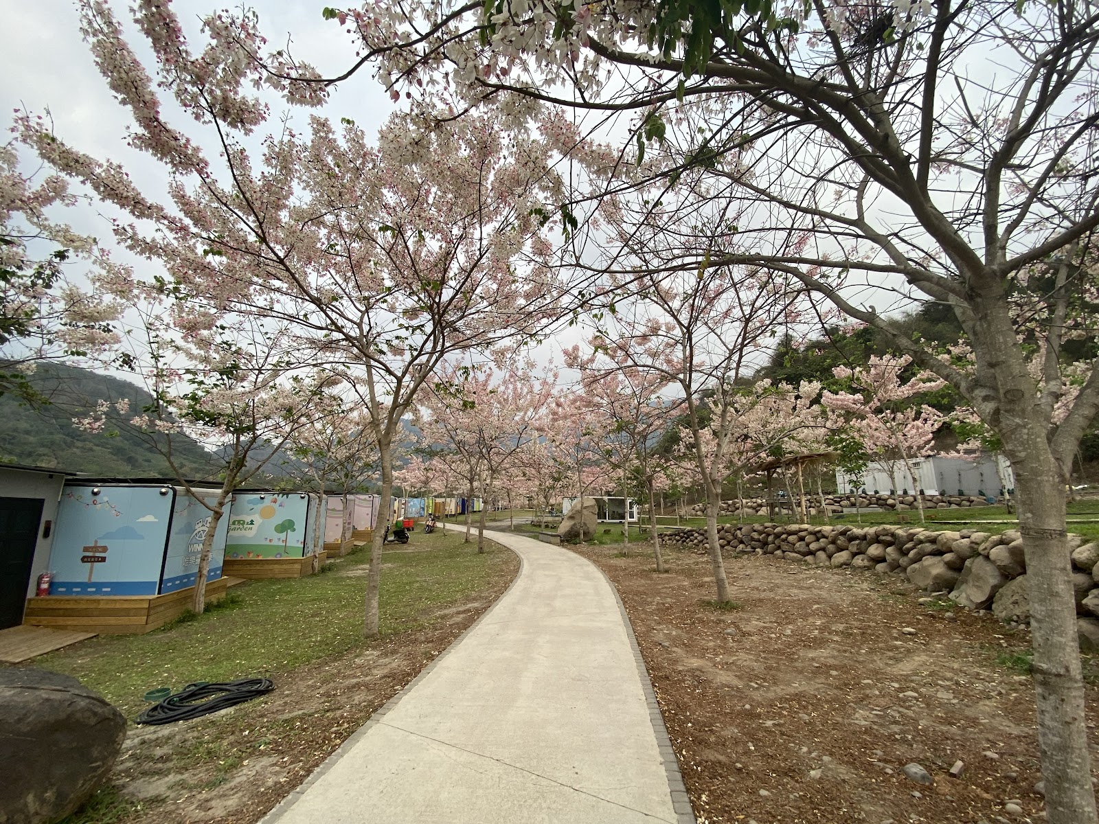 週末看到很多人在此露營家庭非常和樂,草皮很多小孩遊戲玩耍、花旗木花開季節,非常賞心悅目,值得大家前來。但是要注意防蚊措施。