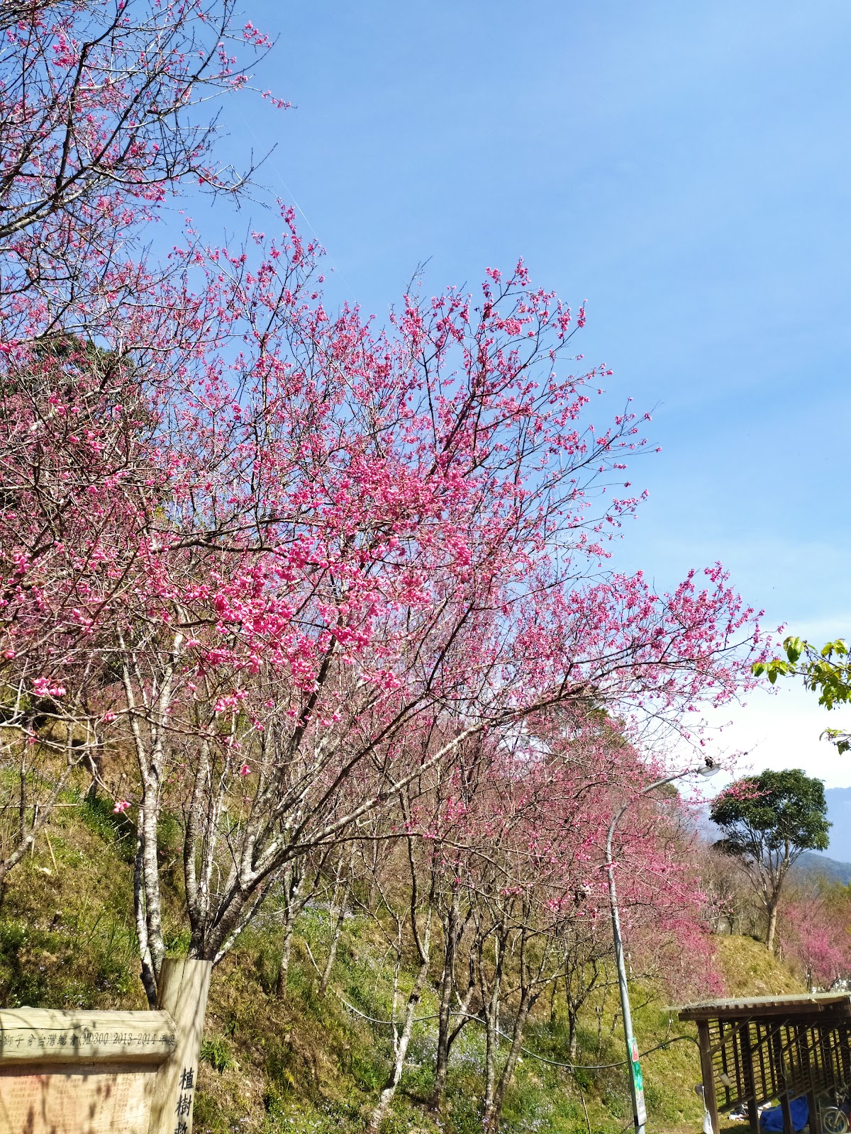 說真的,生為高雄孩子這還是我第一次來二集團這裡😅,天氣不錯加上櫻花綻放開來確實讓整體環境變得很漂亮👍👍,其實從美濃那裡過來的時候路邊就已經有開始放櫻花季的牌子,牌子上面寫櫻花季時間是1/11~2/9,美濃那邊省道28到十八羅漢山省道27甲都有放櫻花季的牌子👍。