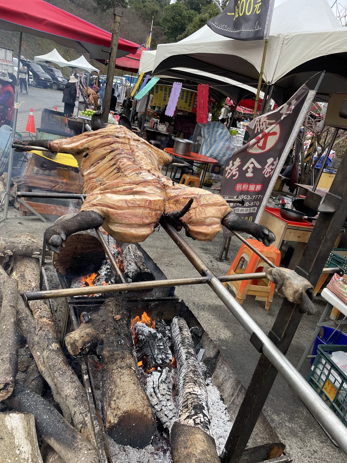 停好車會先看到市集,原民特色食物,有烤乳豬、玉米、甜甜圈、山豬肉等。非常推薦吃小米甜甜圈跟玉米,原味甜甜圈很軟很Q,水煮黃色玉米,超級甜,食物的原味。