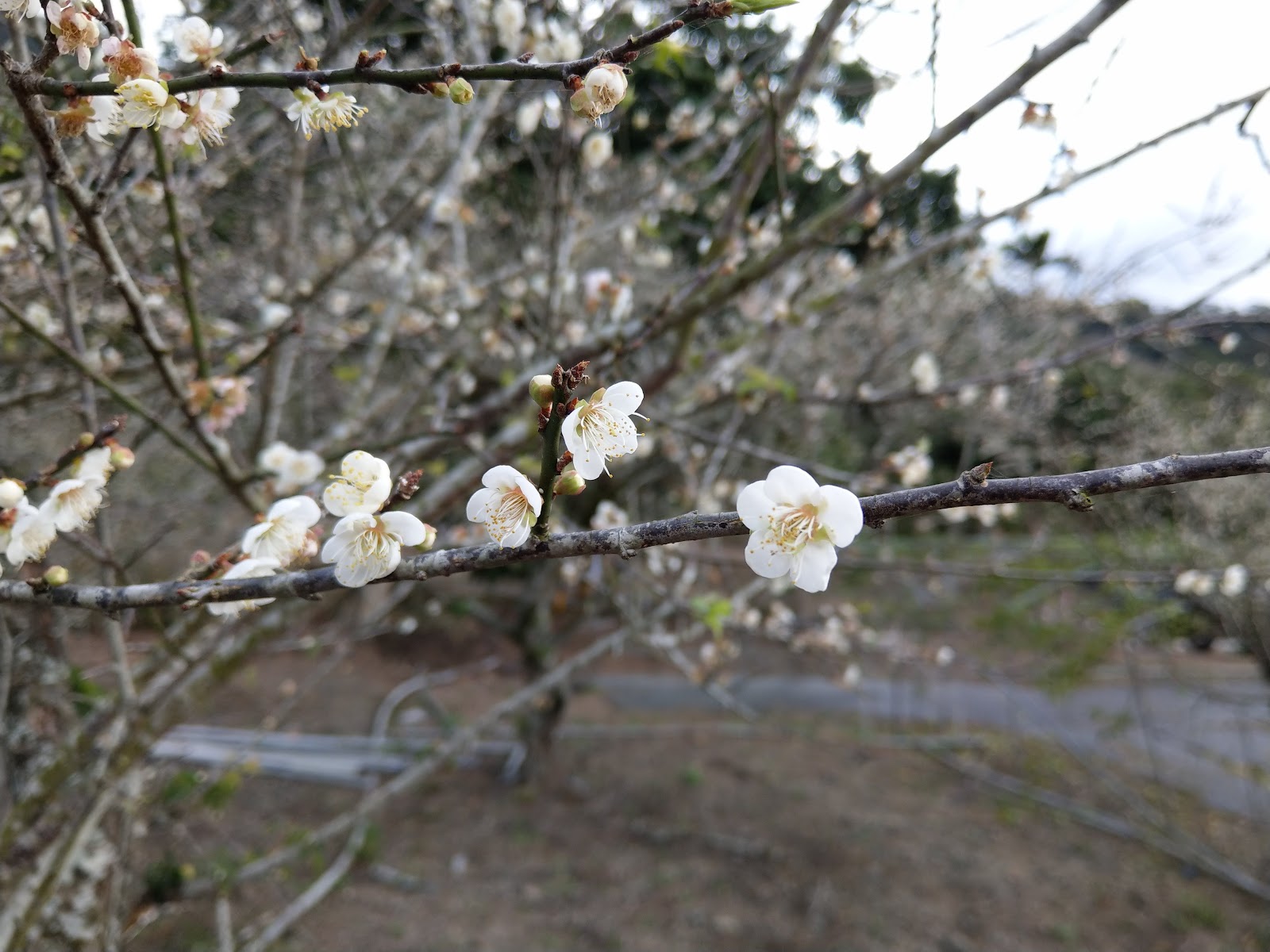 2024/1/5造訪。梅花還沒滿開,樹枝都光禿居多,含苞待放,花開一到二成而已。