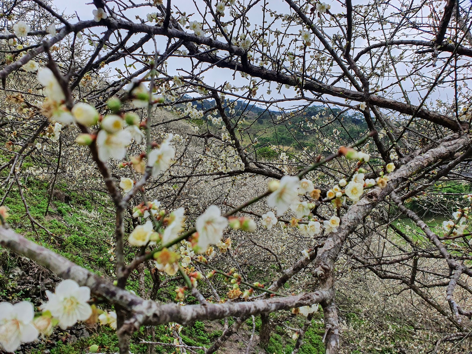 老屋後方山坡的梅花還沒盛開,闆娘介紹去下方一點盛開的秘境,感覺棒極了!