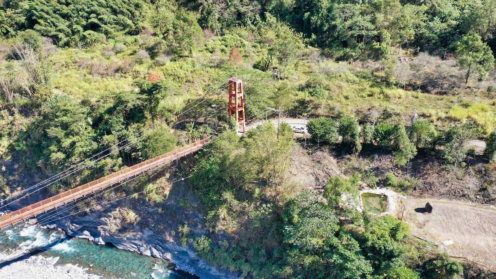 站在吊橋上俯看著溪谷,氣象萬千非常的雄偉壯觀,重點是吊橋非常的穩,不會晃動,有懼高症的人也可以放心的走,如果開車來可以直接開到吊橋頭旁邊的空地停放交通非常的方便