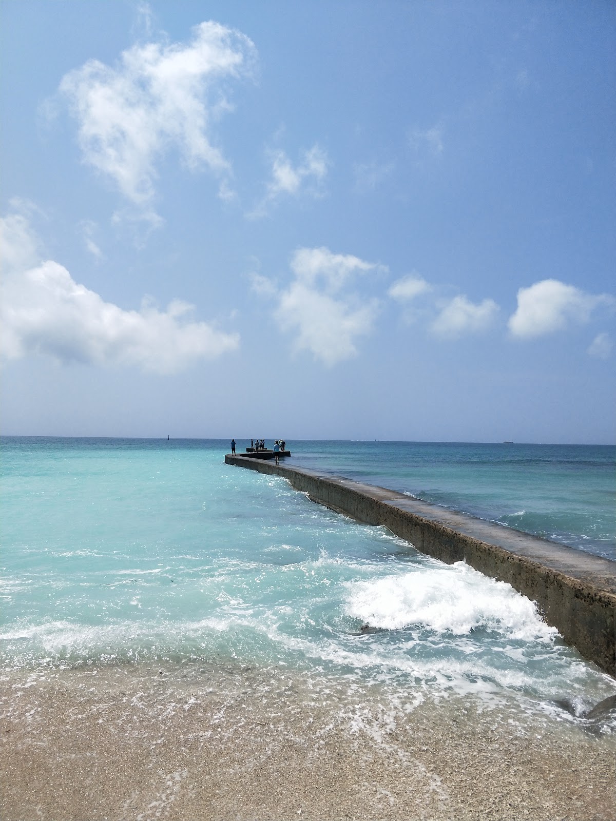 來的時候正值才剛要退潮,波浪拍打天堂路時非常刺激,雖然無法走到盡頭拍往美兆,但站在中間享受海浪拍打也是不錯的選擇~~