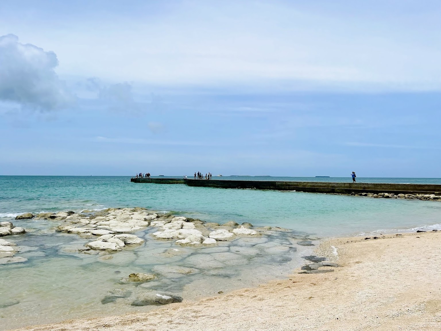 一條筆直延伸進海中央的步道,