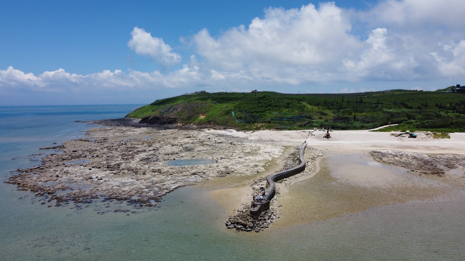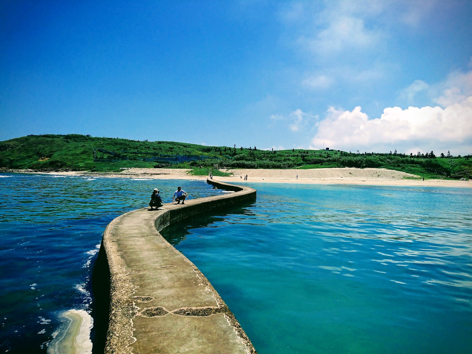 走上去的時候也建議要小心還是多少會有浪打上來,路面潮濕,可能會滑。