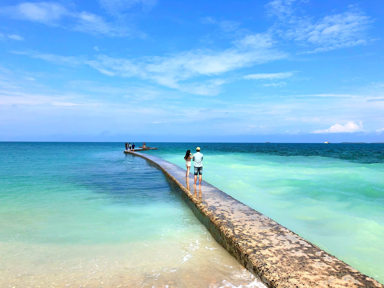 我們選擇搭接駁車到沙灘,到達之後還需要步行一小段路才會到打卡景點。清澈的海水+藍天白雲真的彷彿置身天堂,但美中不足的是那天去的時候是滿潮狀態,海水不斷一波接著一波拍打在天堂島的路,遊客完全沒辦法站在上面拍照,就如同前面的評論所說這是風險滿高的事。