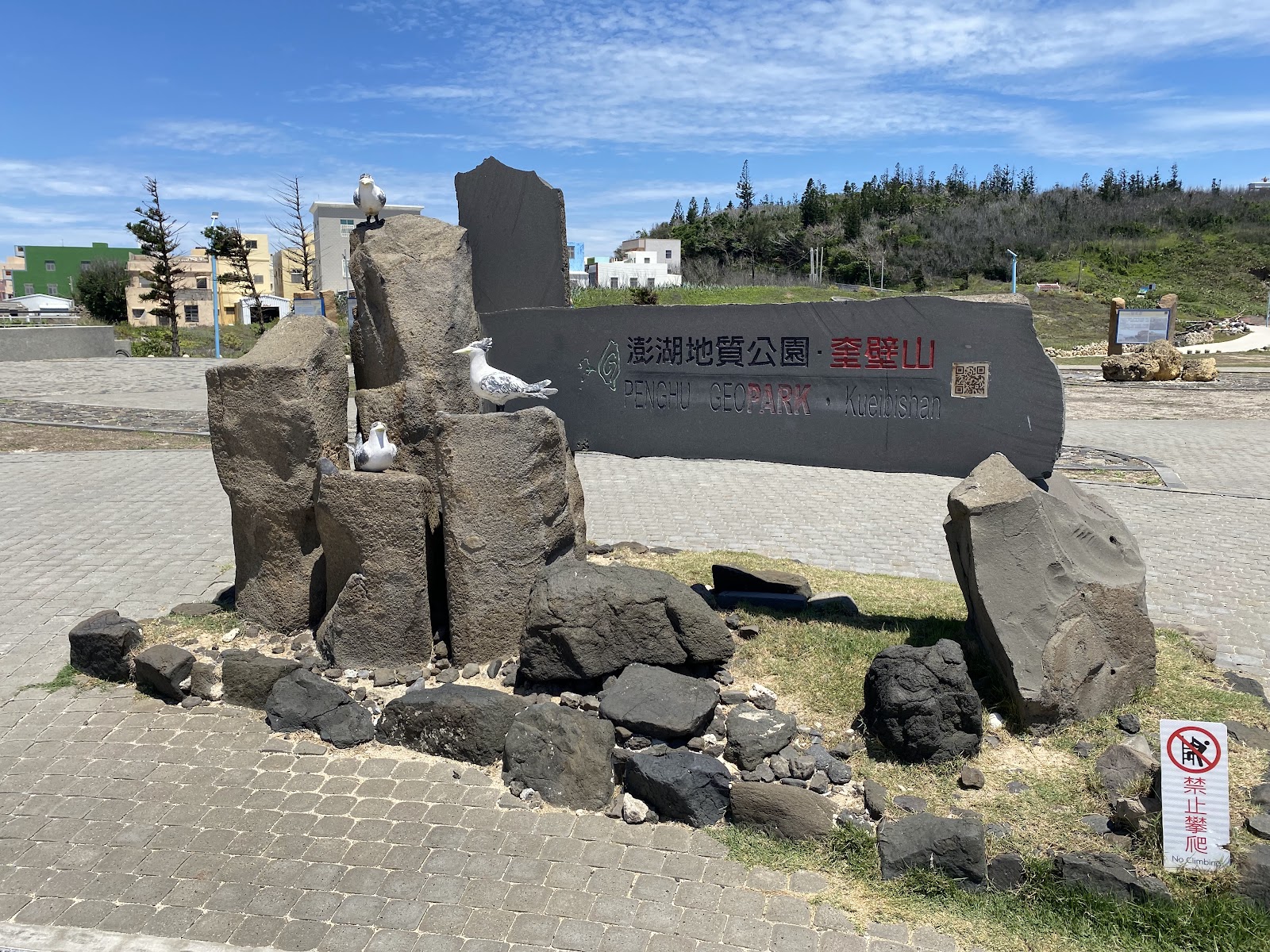 真正的名稱為澎湖地質公園奎壁山,名為地質公園當然會有地質方面的景觀及介紹,較著名的就是陸連島赤嶼的潮汐涉水路,而奎壁山海岸的玄武岩石壁也很有看頭,園區裡設置有完善的公共廁所服務,廁所外則設置有沖洗的水龍頭,可以沖洗腳上及鞋子的沙粒;即然是重要風景區,當然就會有遊客服務中心,服務中心內除了地質方面的展示及說明外,還提供有飲水機供使用,另外園區週圍沒有免費的停車空間,所以都必需停放園區的收費停車場,機車是計次的一次20元;另外有兩座涼亭供賞景發呆,餐飲方面也有一棟景觀餐廳。