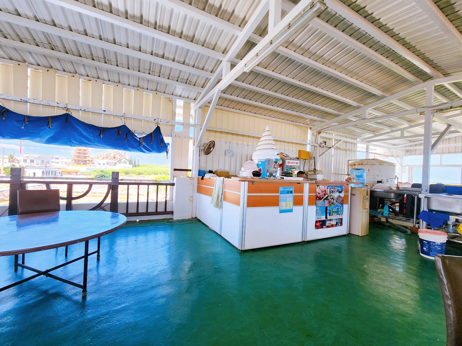 其實已經超過遊玩時間,但老闆看到天上烏雲密佈,還跟我們說先不要走,雨勢會很大,提前躲一下,果然沒多久傾盆大雨降下,我們在雨聲中繼續吃著鮮蚵。