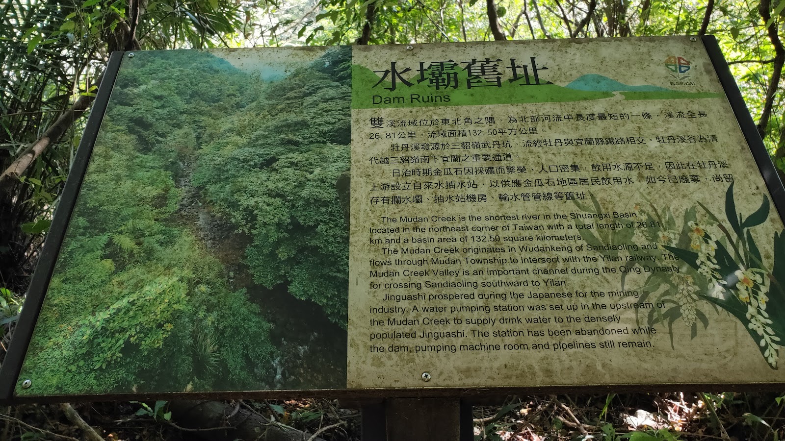 金瓜石用水需求: 日治時期為滿足金瓜石礦區龐大的用水需求,於牡丹溪上建造了水壩、抽水機房及水管等設施,至今仍留有遺跡。